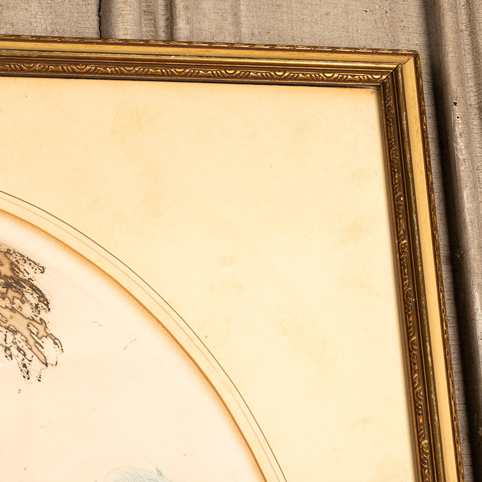 Framed antique Art Deco print measuring approx. 24 5/8" wide x 28 5/8" tall x 1" front to back. See photos to evaluate condition.