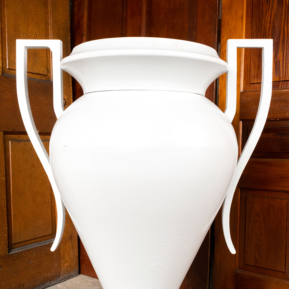 Antique large three piece Kramer Brothers Dayton, Ohio cast iron handled planter urn measuring approx. 28 1/4" wide x 41" tall with a 22 1/4" diameter base. See photos to evaluate condition.