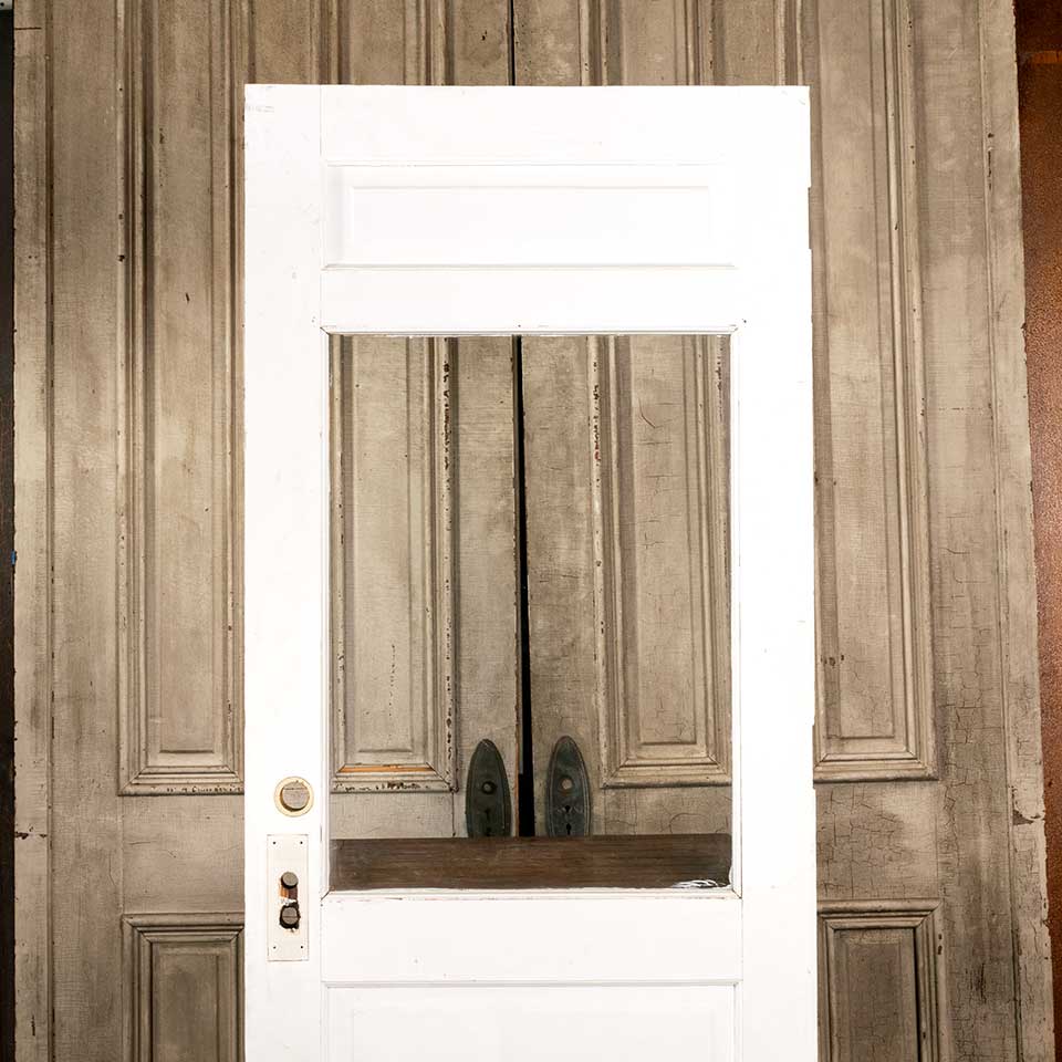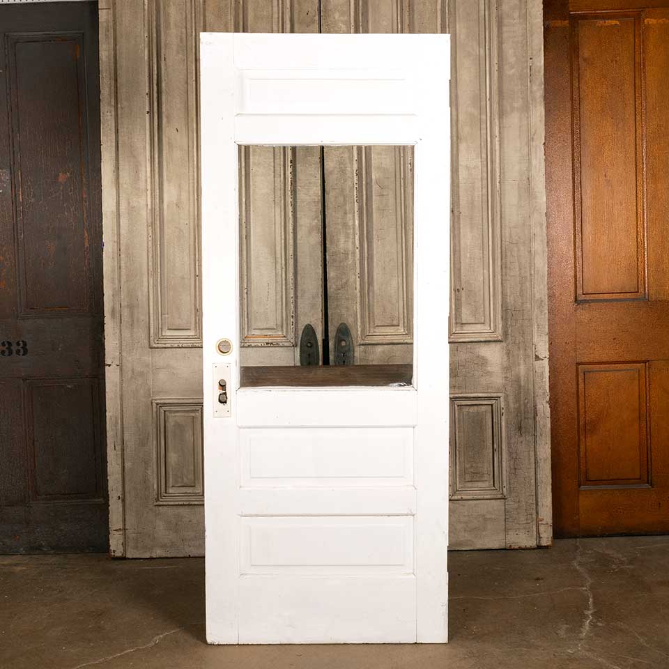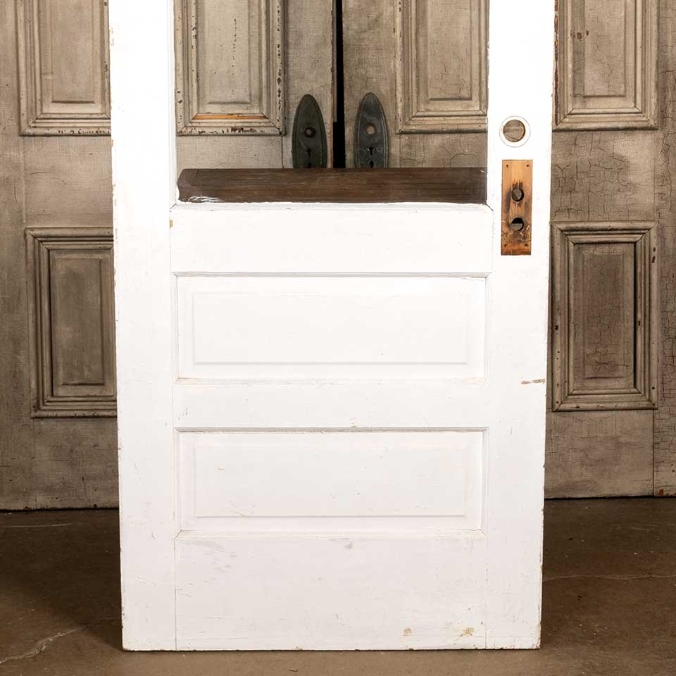 Antique architectural salvage half lite wood entry door measuring approx. 31 7/8" wide x 79 1/4" tall x 1 3/8" thick. See photos to evaluate condition.