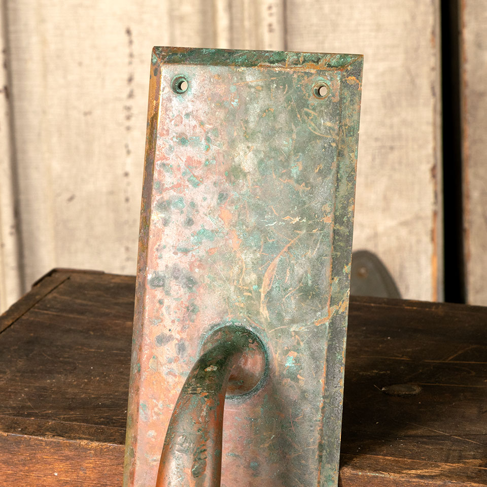 Antique architectural salvage cast bronze Russwin Lenox pattern door handle pull hardware measuring approx. 3 1/2"" wide x 15" long x 2 3/8" front to back. See photos to evaluate condition.