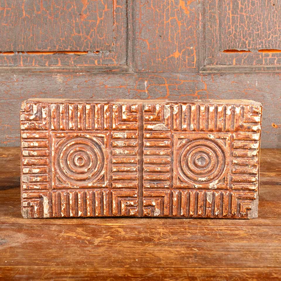 Architectural salvage antique salt glazed paver brick with circle pattern measuring approx. 9 3/4" wide x 4 3/4" tall x 2 1/2" thick. Color and condition varies. Priced at $15/each. More available, contact us to inquire.