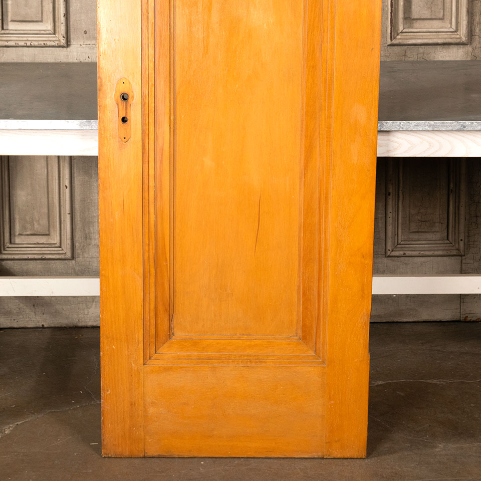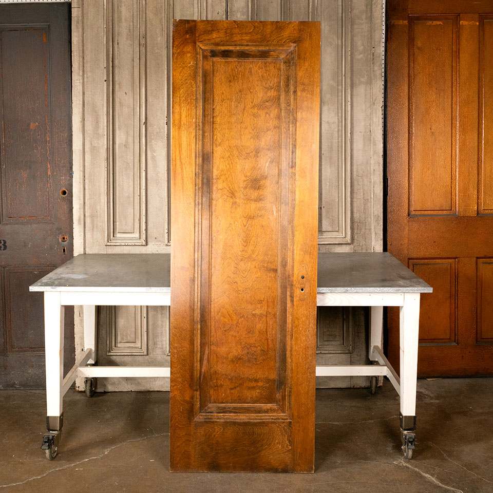 Antique architectural salvage one panel interior door measuring approx. 25 3/4" wide x 79 7/8" tall x 1 3/8" thick. There's a small piece of panel trim missing towards the bottom on one side of the door. See photos to evaluate condition.