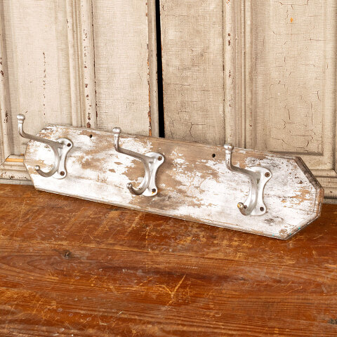 Antique architectural salvage wall mount three hook coat rack measuring approx. 24" wide x 5 3/8" tall x 6 3/8" front to back. See photos to evaluate condition.