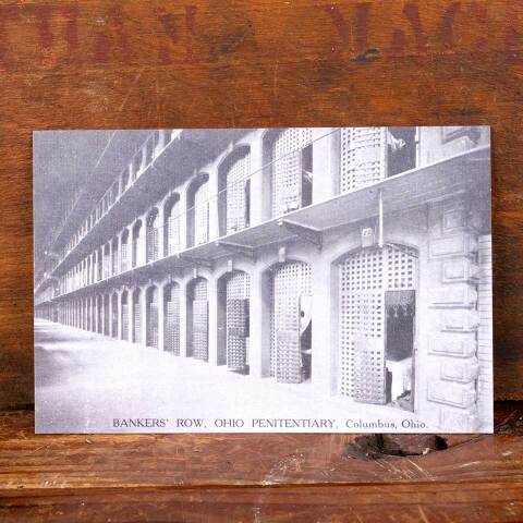 Reproduction 4" x 6" antique postcard featuring Bankers' Row, Ohio State Penitentiary Columbus, Ohio. Priced at $5/each.