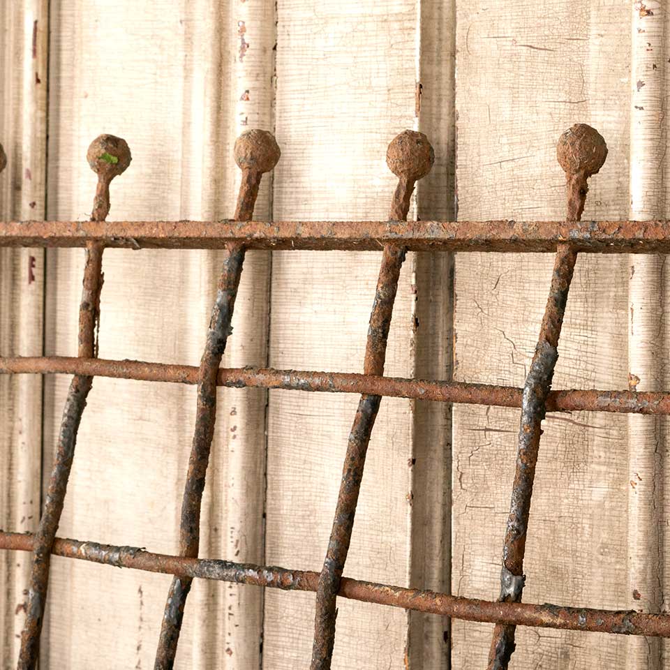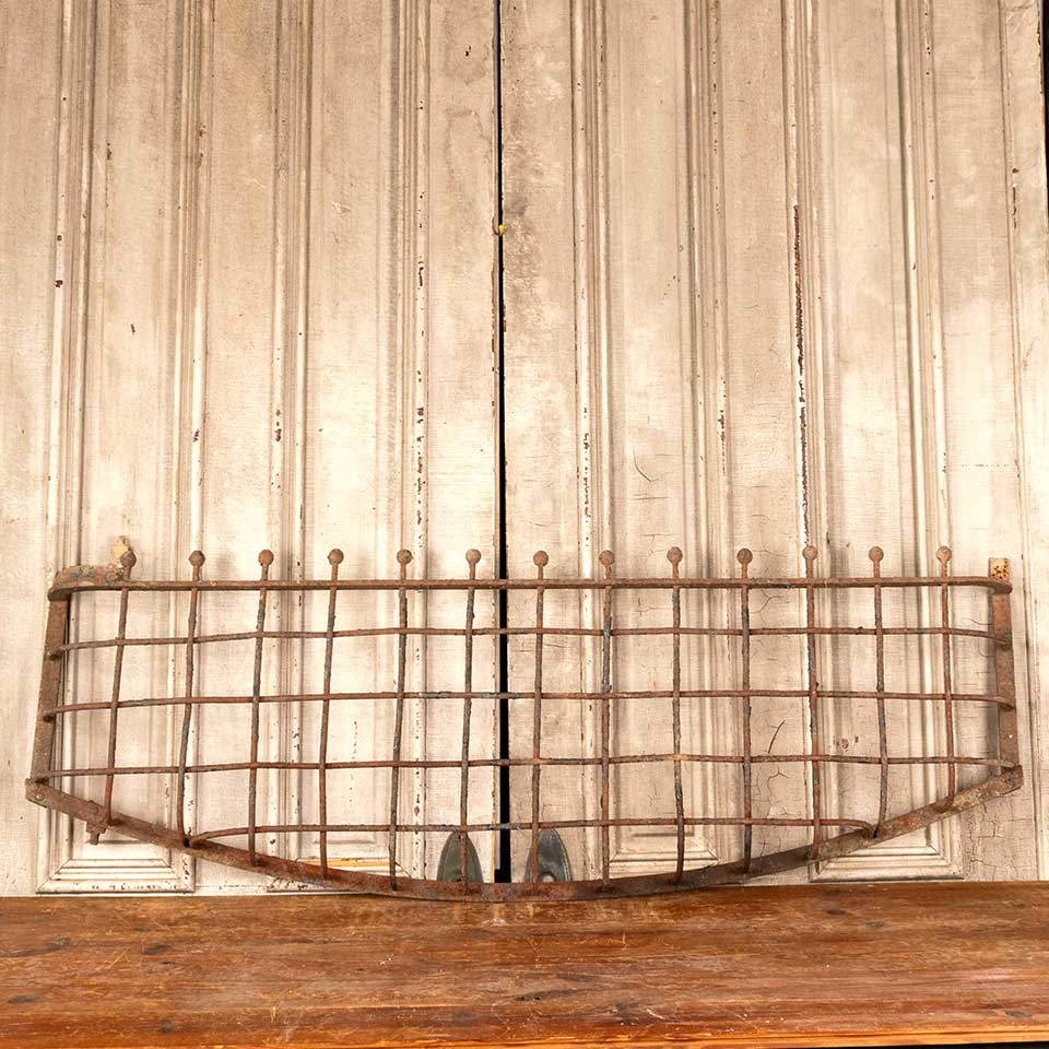 Architectural salvage antique wrought iron window grate cover measuring approx. 61" wide x 21" tall x 4" front to back. See photos to evaluate condition.