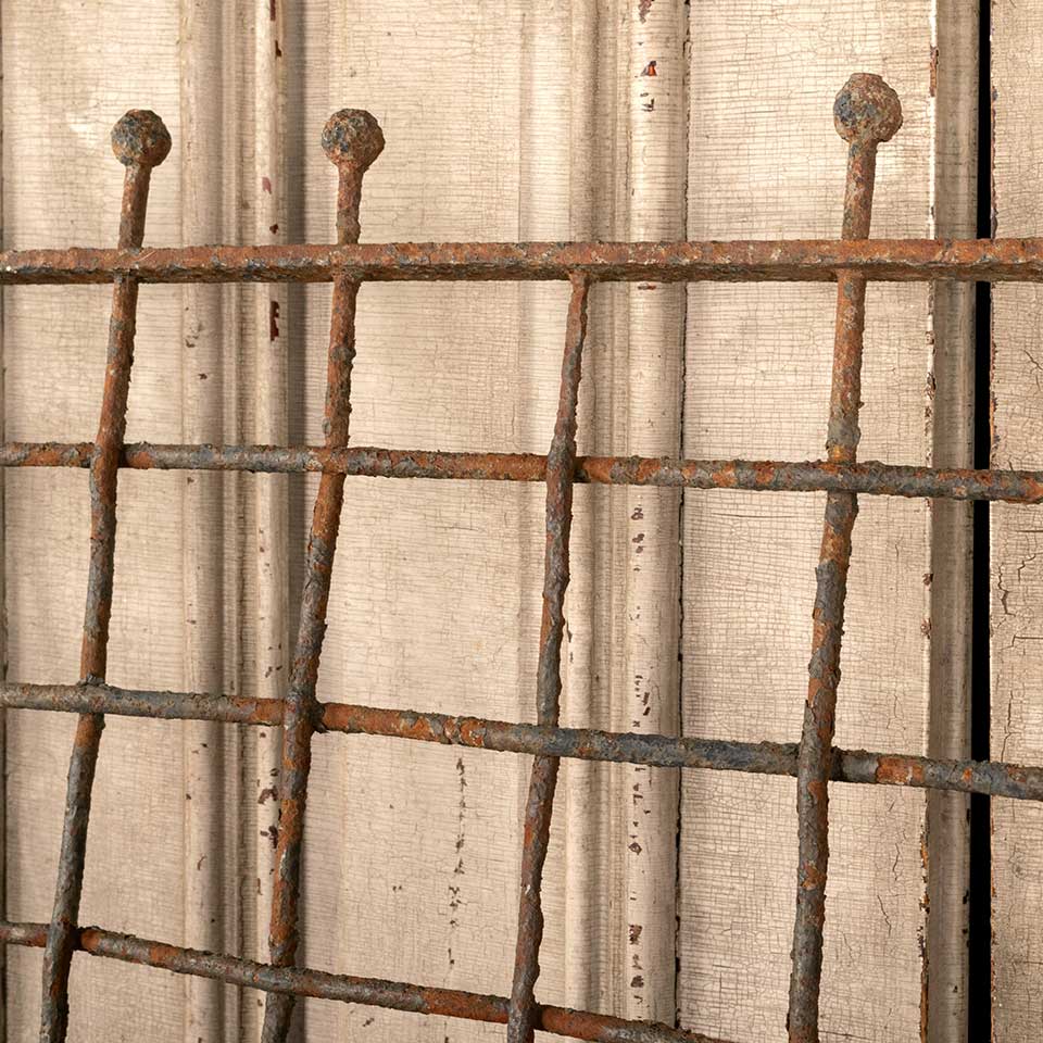 Architectural salvage antique wrought iron window grate cover measuring approx. 61" wide x 21 1/2" tall x 4" front to back. See photos to evaluate condition.