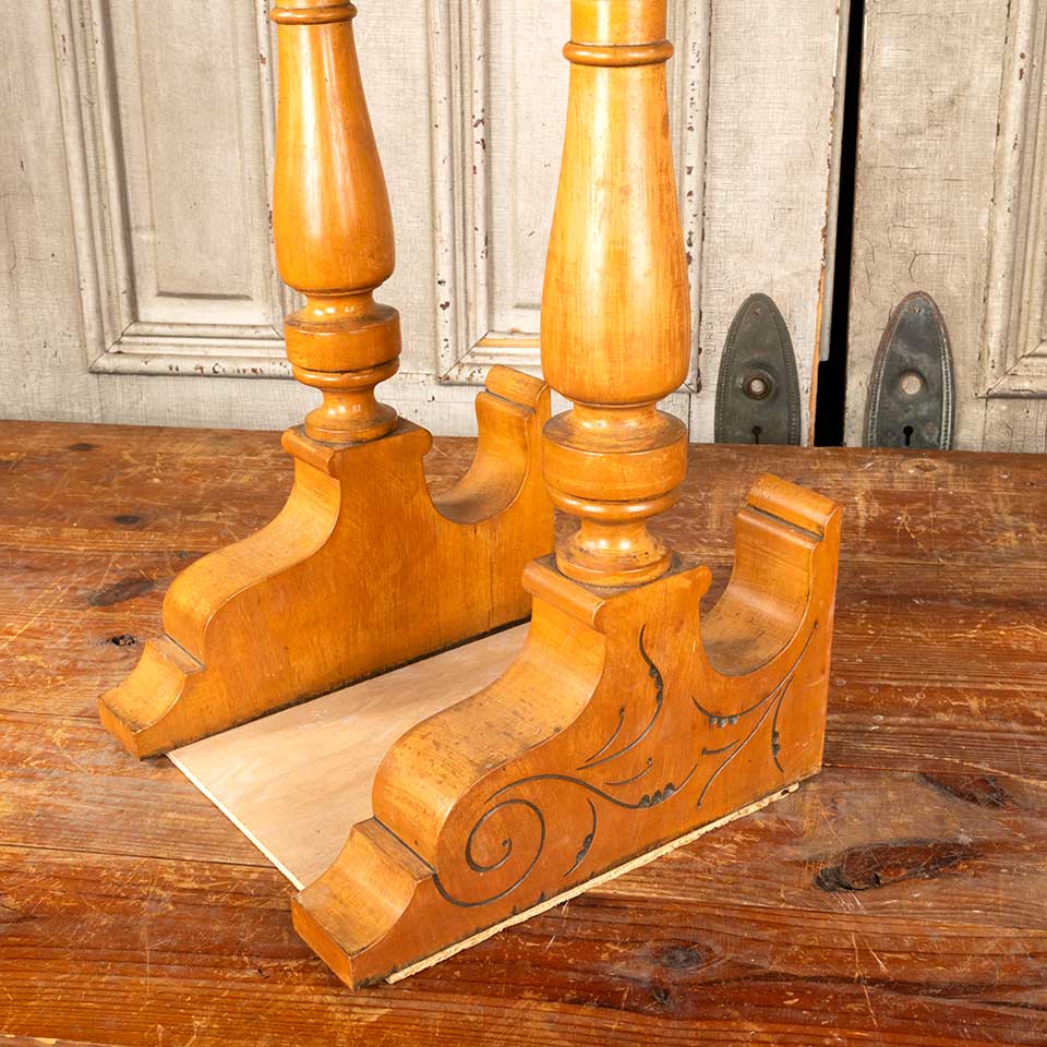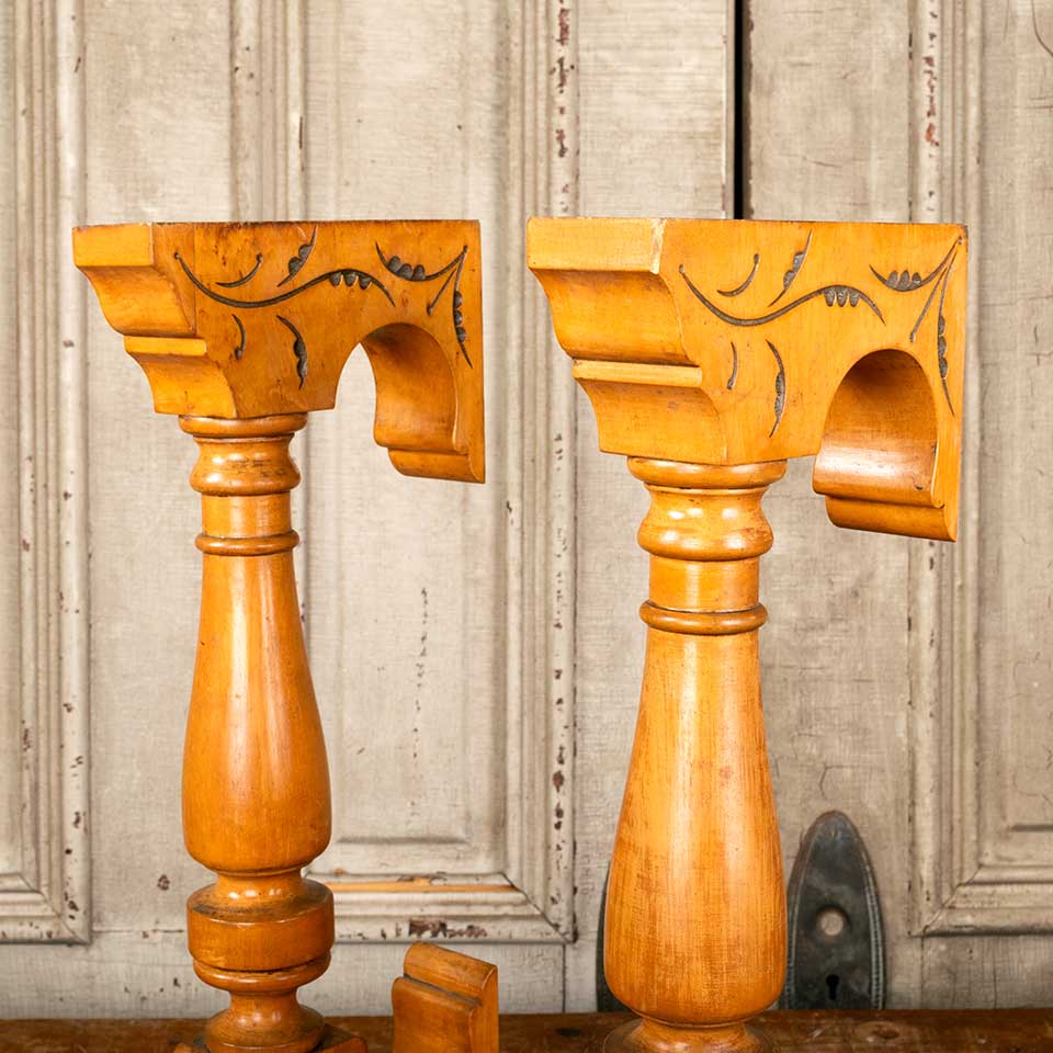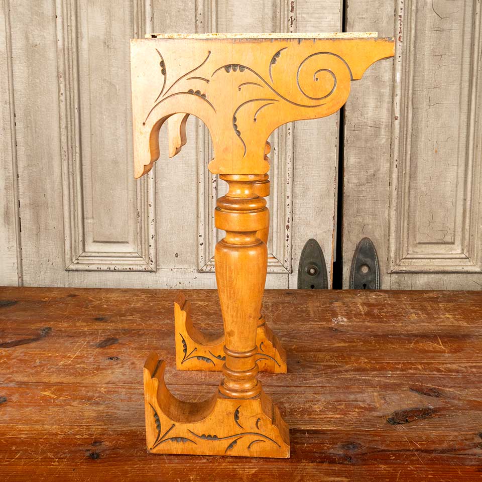 Pair of architectural salvage antique carved wood piano / organ corbel brackets each measuring approx. 2 1/4" wide x 21" tall x 12" front to back. See photos to evaluate condition. Priced at $150 for the pair.