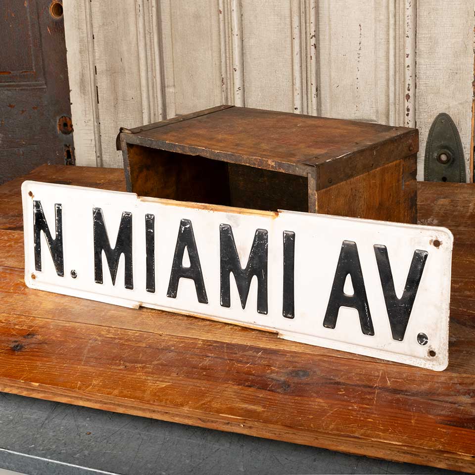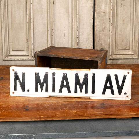 Architectural salvage antique MIAMI street sign measuring approx. 24" wide x 6" tall x 1/4" front to back. See photos to evaluate condition.