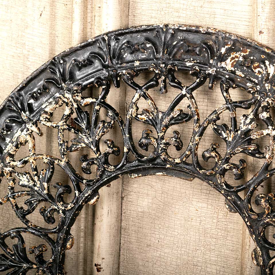 Architectural salvage antique round ornate cast iron heat grate vent cover measuring approx. 15 7/8" in diameter (with a 6 3/4” diameter interior opening) x 1/2" front to back. See photos to evaluate condition.