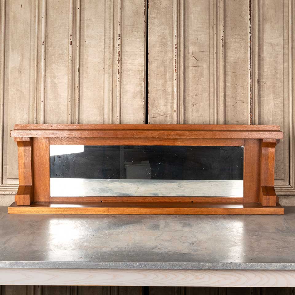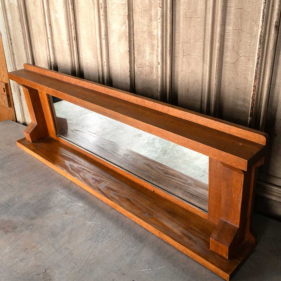 Antique Mission Arts and Crafts solid oak buffet stand mirror measuring approx. 48 1/8" wide x 15 1/4" tall x 6" front to back. See photos to evaluate condition.