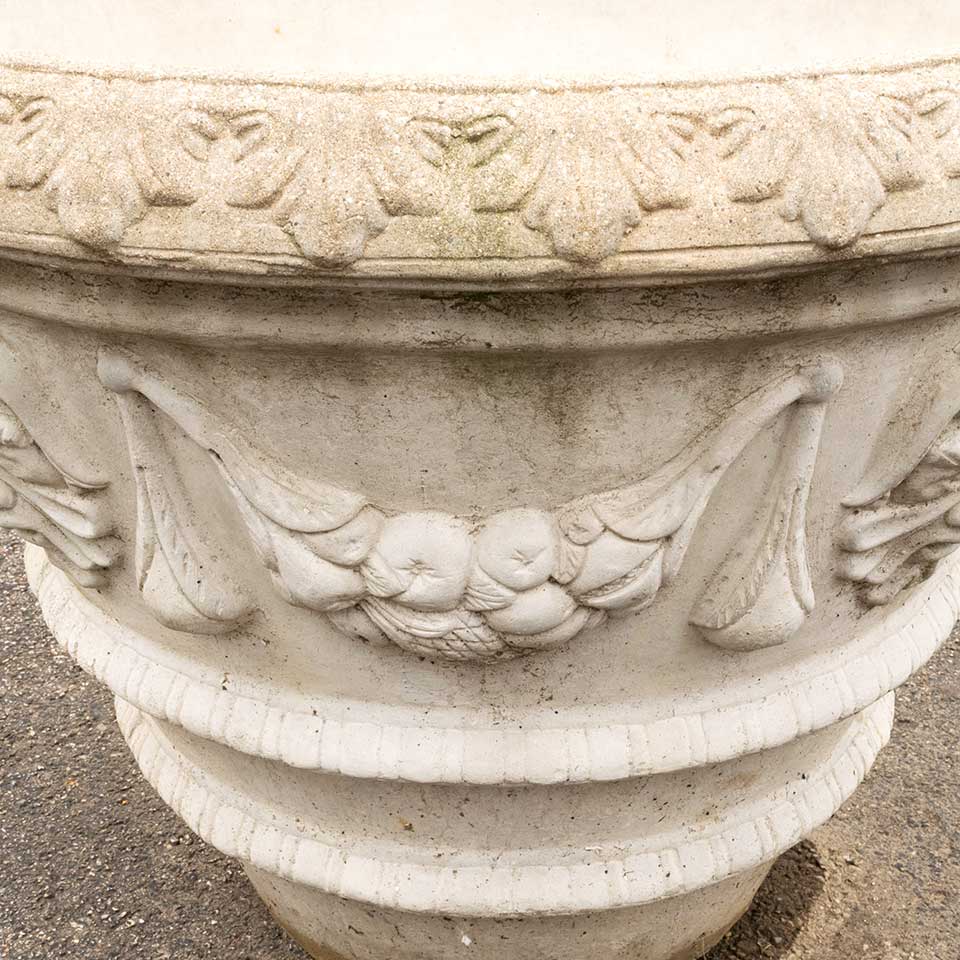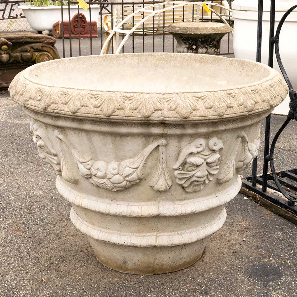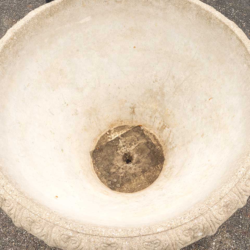 Architectural salvage large cast concrete garden patio planter urn measuring approx. 32" in diameter x 24" tall. See photos to evaluate condition.