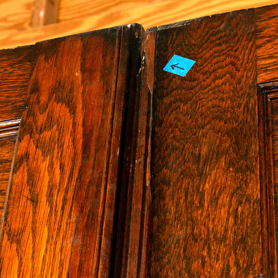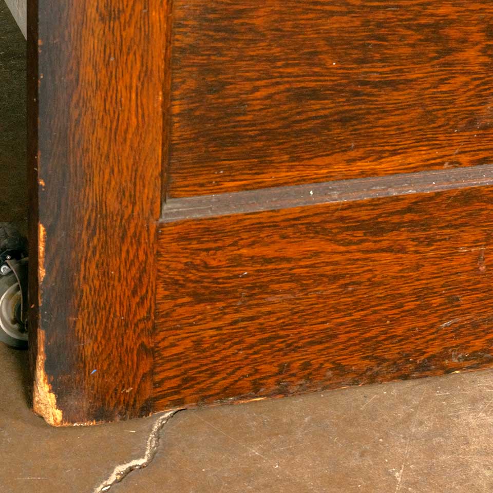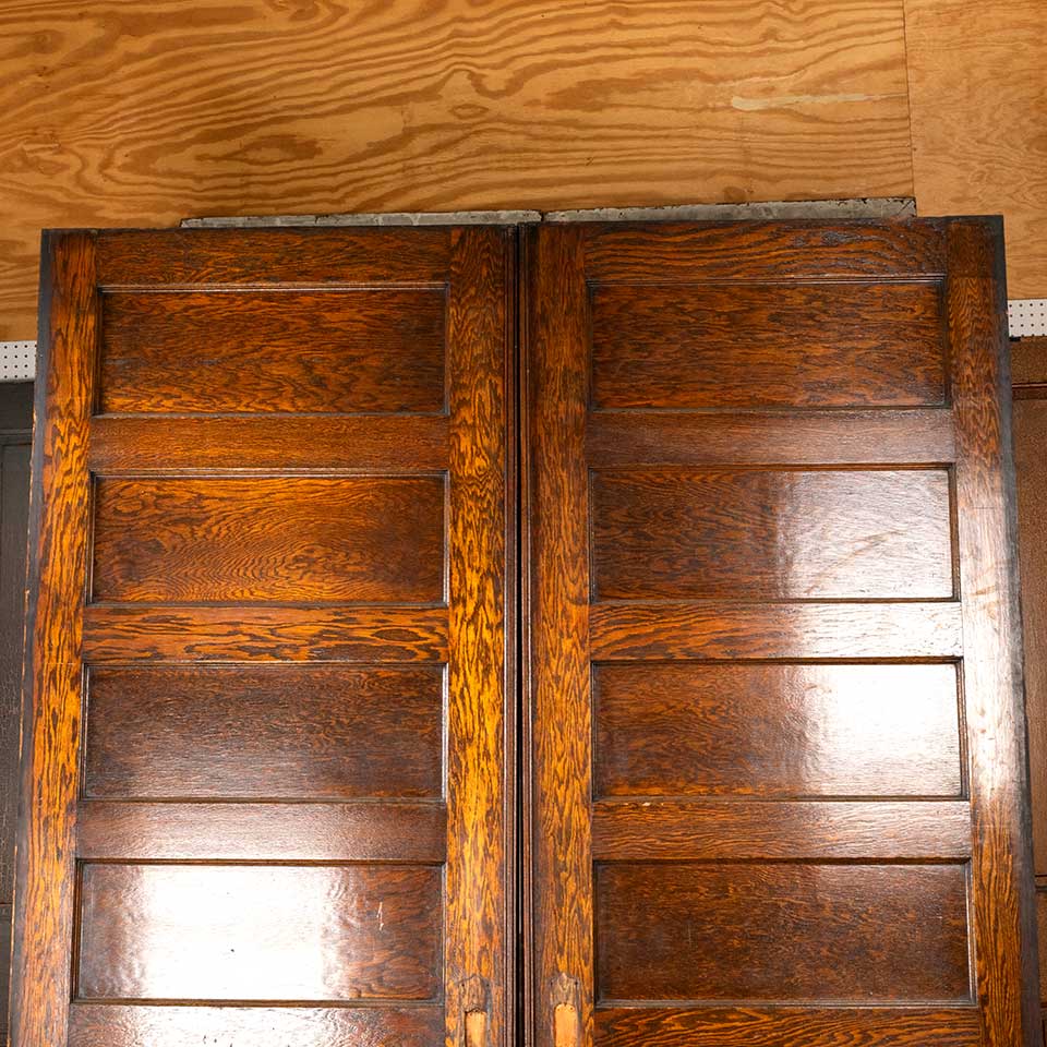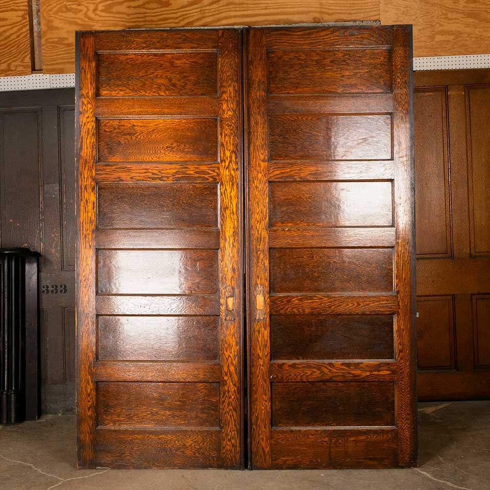 Pair of antique architectural salvage oak horizontal 6 panel pocket doors together measuring approx. 73 1/2" wide x 95 1/2" tall x 1 3/4" thick. There's some minor wood loss. See photos to evaluate condition. Priced at $2,500 for the pair.