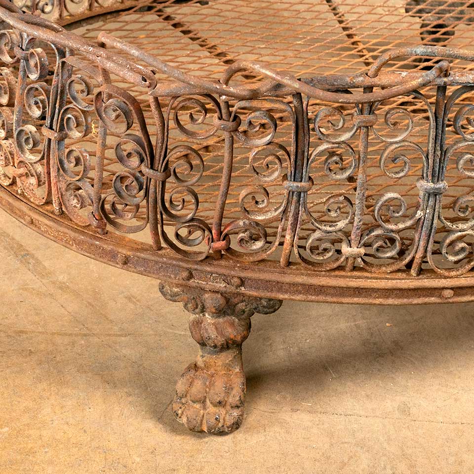 Architectural salvage unusual antique wrought iron oval container basket with cast iron claw feet measuring approx. 33 1/2" x 40" x 14" tall. There are some condition issues, see photos to evaluate.