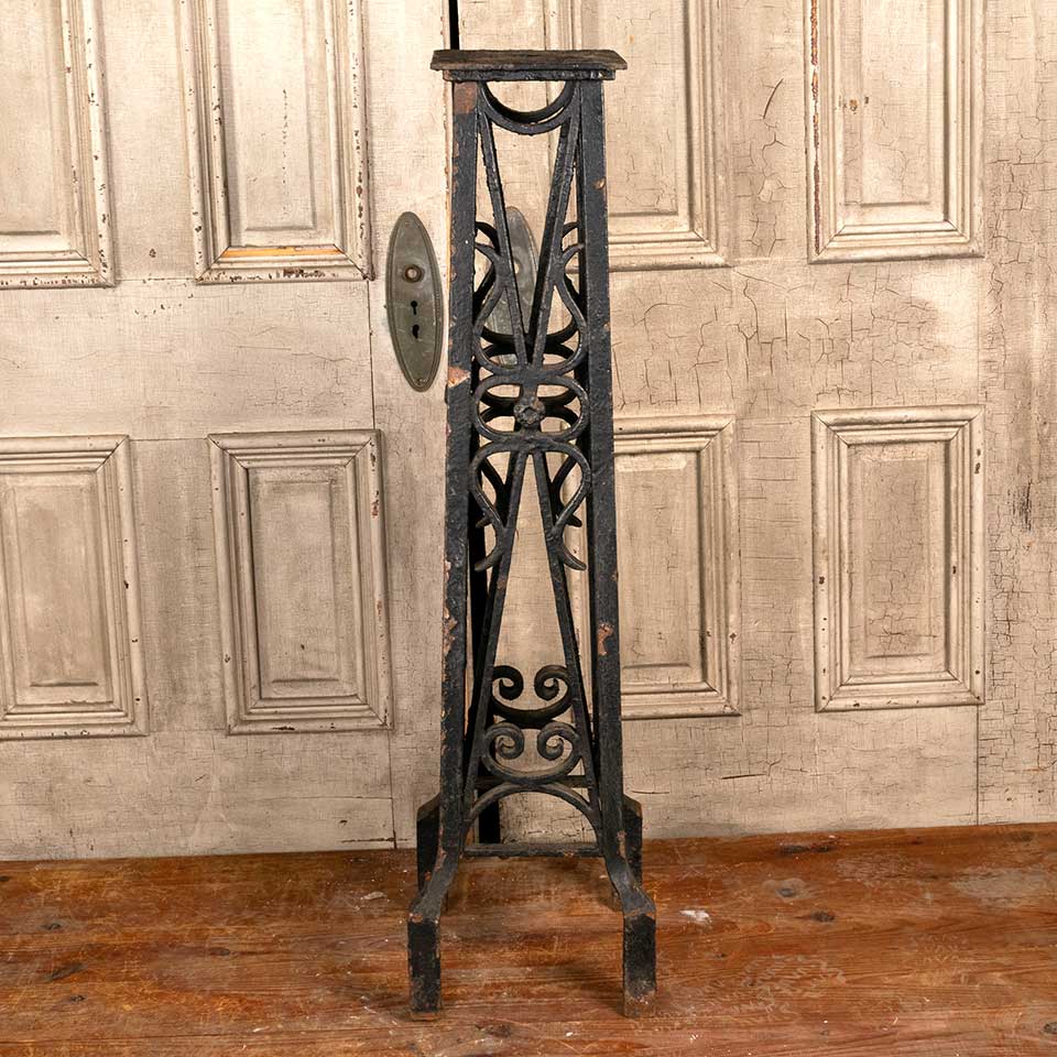 Architectural salvage antique heavy cast iron exterior lamp base measuring approx. 46" tall with an 8 1/2" square top and a 12 1/8" square base. See photos to evaluate condition.