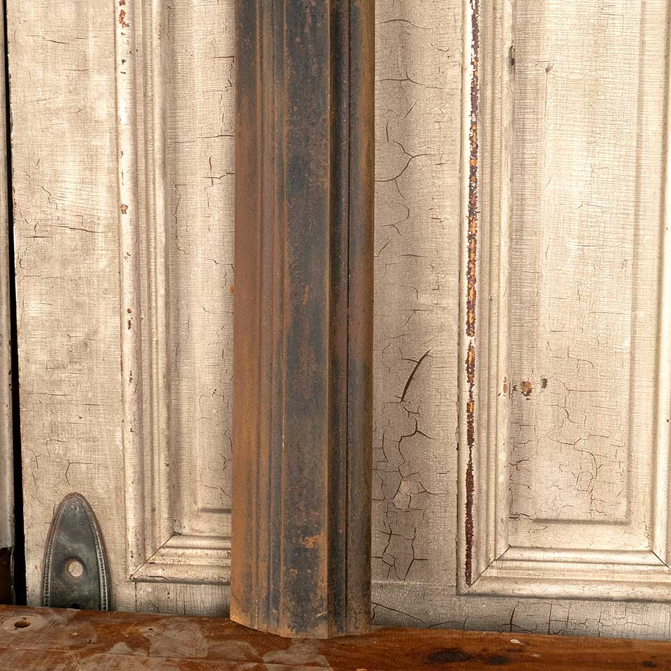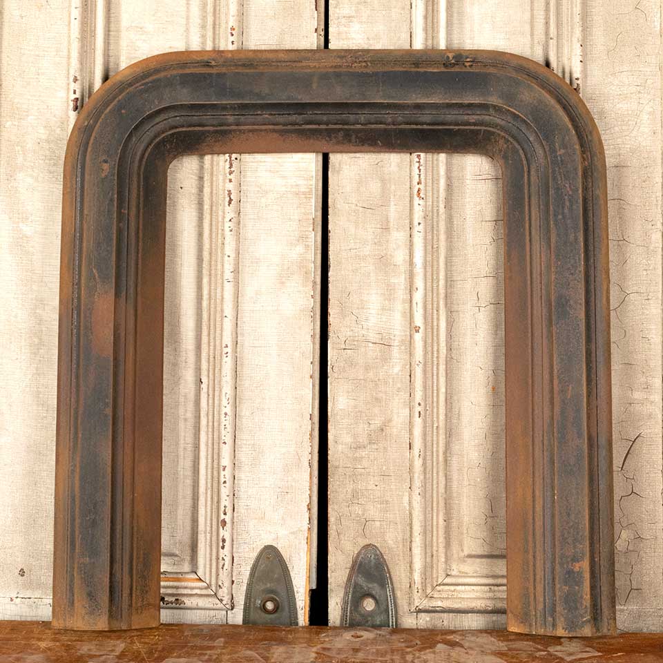 Architectural salvage antique cast iron fireplace surround with rounded corners measuring approx. 30" wide x 32" tall x 2 1/2" front to back. The interior opening measures approx. 19" wide x 26" tall. See photos to evaluate condition.