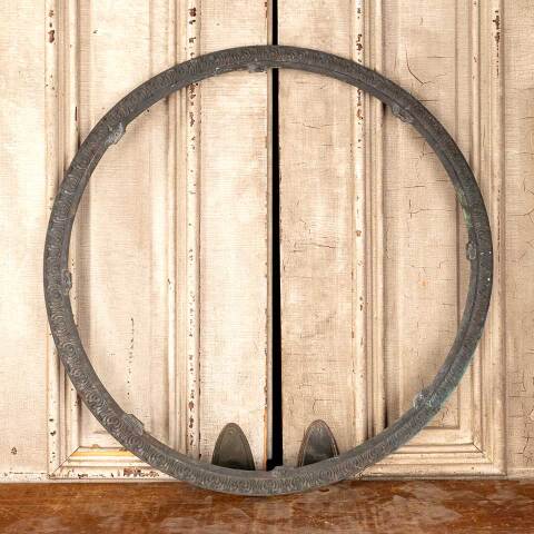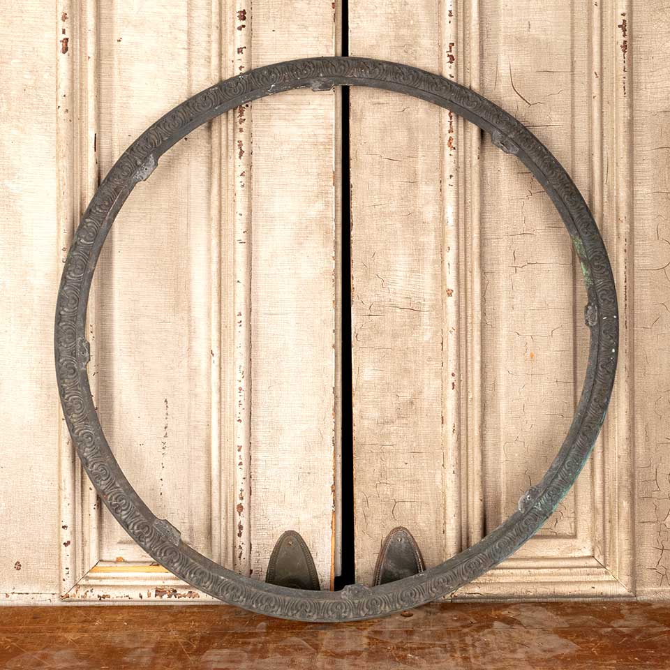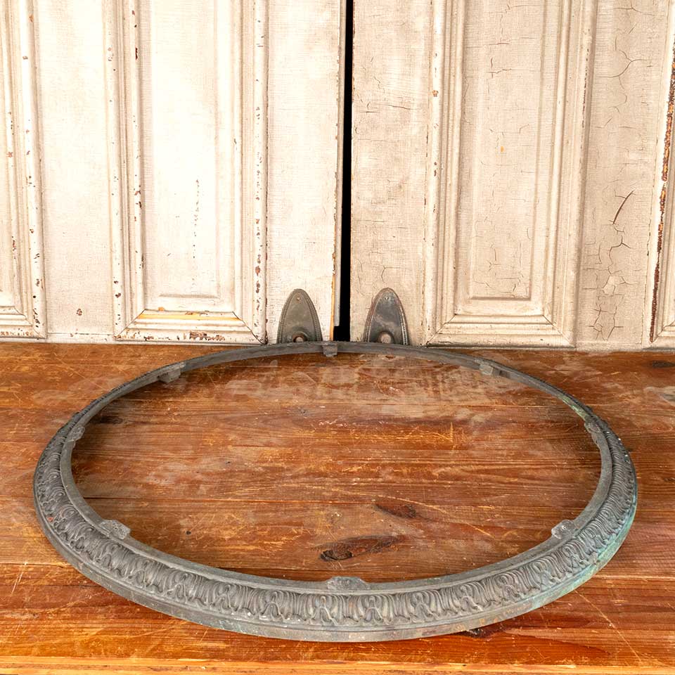 Architectural salvage large ornate antique brass chandelier ring measuring approx. 28 1/4" in diameter x 1 1/8" thick. See photos to evaluate condition.