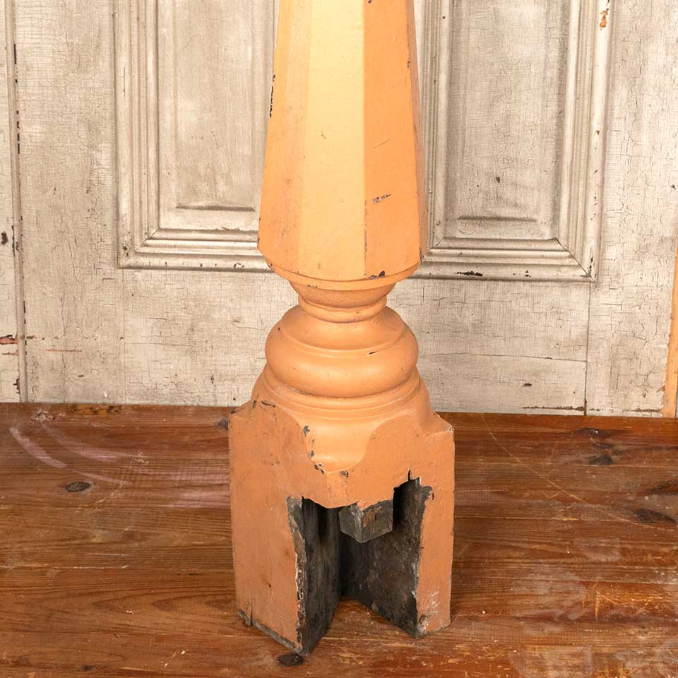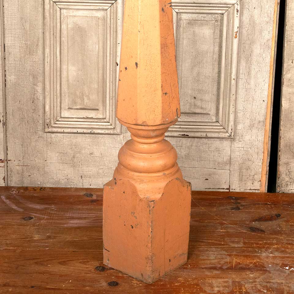 Architectural salvage antique octagonal painted wood staircase newel post measuring approx. 41 1/2" tall with a 7 1/4" diameter top and a 6 7/8" x 6 5/8 base. See photos to evaluate condition.