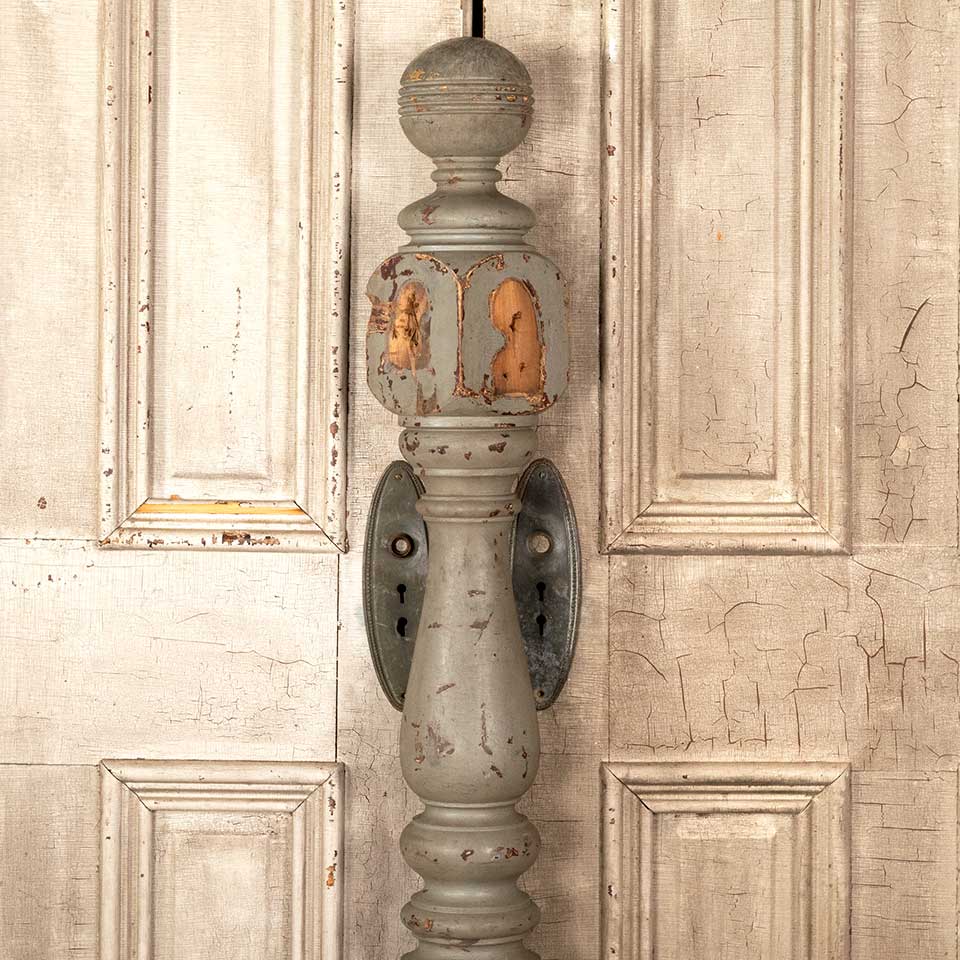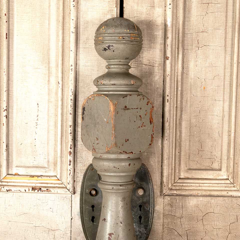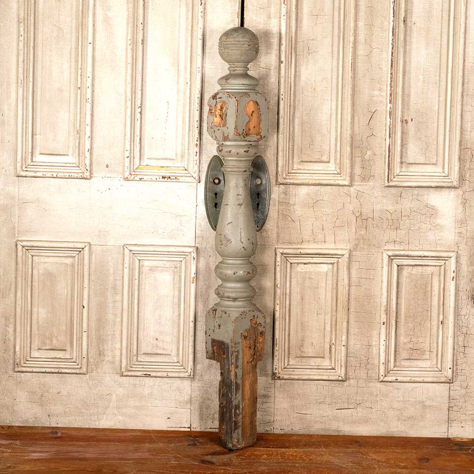 Architectural salvage antique Victorian turned painted wood staircase newel post measuring approx. 53 3/8" tall (overall) with a 5 1/2" x 5 1/2" top and a 5 1/2" x 5 3/4" base. The bottom of the post has been notched. See photos to evaluate condition.