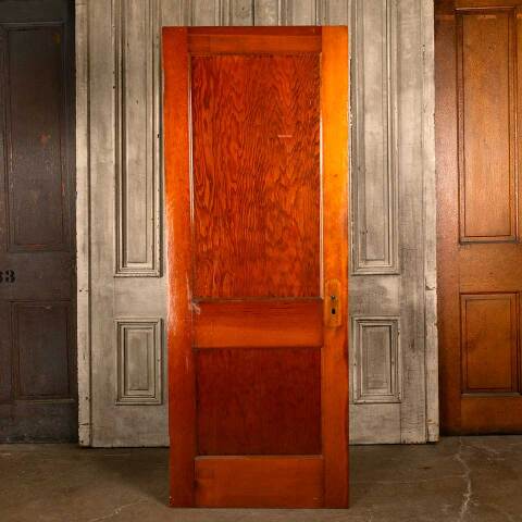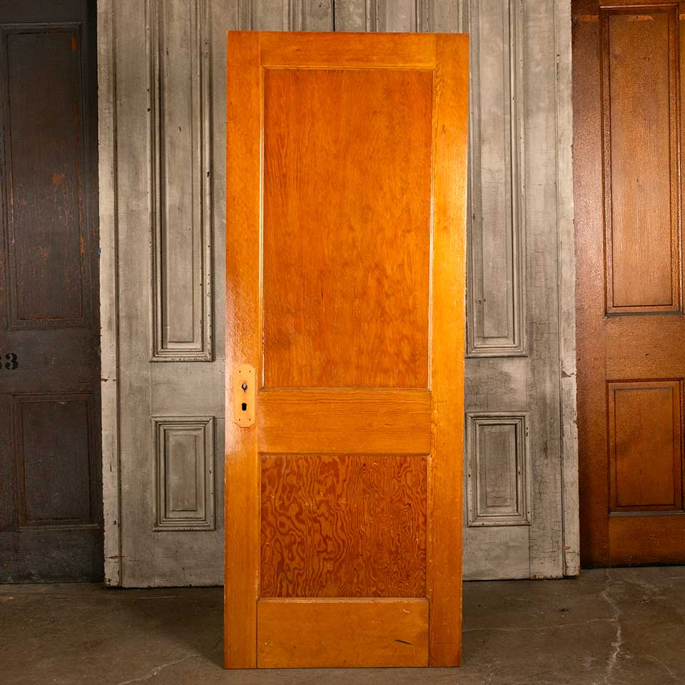 Architectural salvage antique two panel wood interior door measuring approx. 29 13/16" wide x 79 1/8" tall x 1 3/8" thick. See photos to evaluate condition.