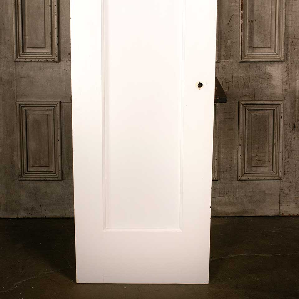 Architectural salvage antique painted wood 1 panel interior door with mortise lock measuring approx. 24" wide x 78 5/8" tall x 1 3/8" thick. See photos to evaluate condition.