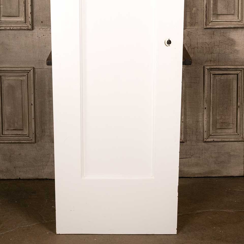 Architectural salvage antique painted wood 1 panel interior door with mortise lock measuring approx. 23 11/16" wide x 79 5/8" tall x 1 3/8" thick. See photos to evaluate condition.