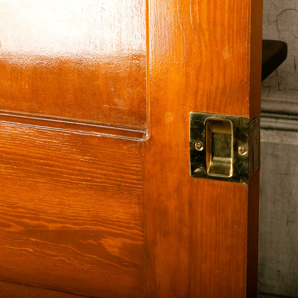 measuring approx. 35 15/16" wide x 79 1/2" tall x 1 3/8" thick. This is not an antique door. There are gouges in the wood on one side of the door and some veneer imperfections on the upper panel of the other side of the door. See photos to evaluate condition.