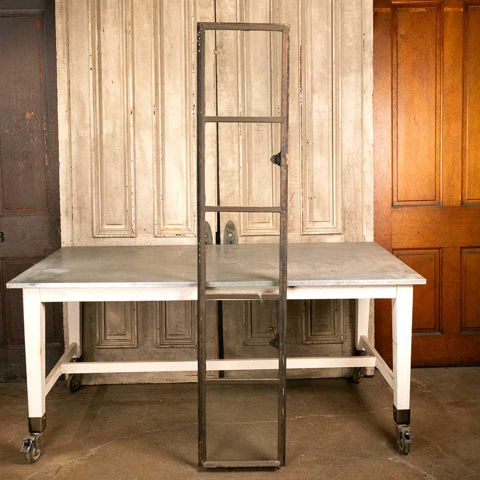 Architectural salvage antique divided five lite steel and glass casement window with original brass latches measuring approx. 15 1/2" wide x 76 1/4" tall x 1 1/2" thick. There are no hinges included. See photos to evaluate condition.