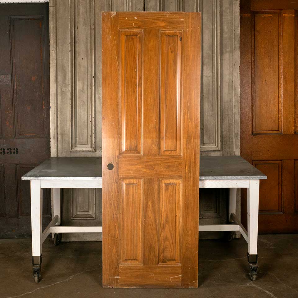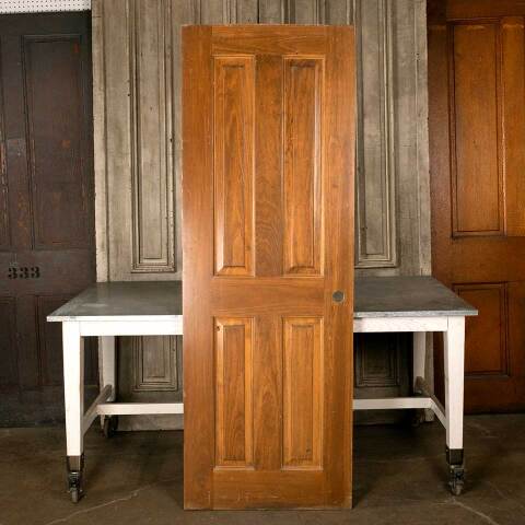 Architectural salvage 4 panel wood interior door measuring approx. 28 1/8" wide x 80" tall x 1 3/8" thick. This is not an antique door. See photos to evaluate condition.
