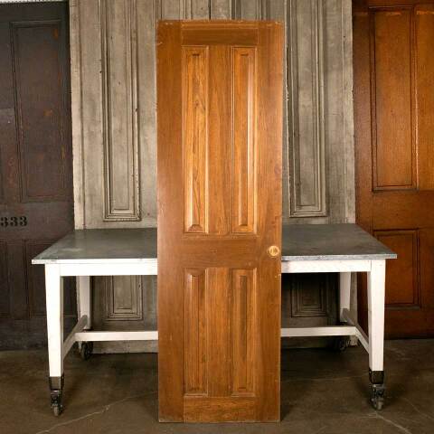 Architectural salvage 4 panel wood pocket door measuring approx. 24 3/16" wide x 78 3/8" tall x 1 3/8" thick. This is not an antique door. See photos to evaluate condition.