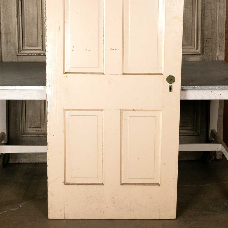 Architectural salvage antique painted wood four panel interior door measuring approx. 31 7/8" wide x 79 3/4" tall x 1 3/8" thick. See photos to evaluate condition.