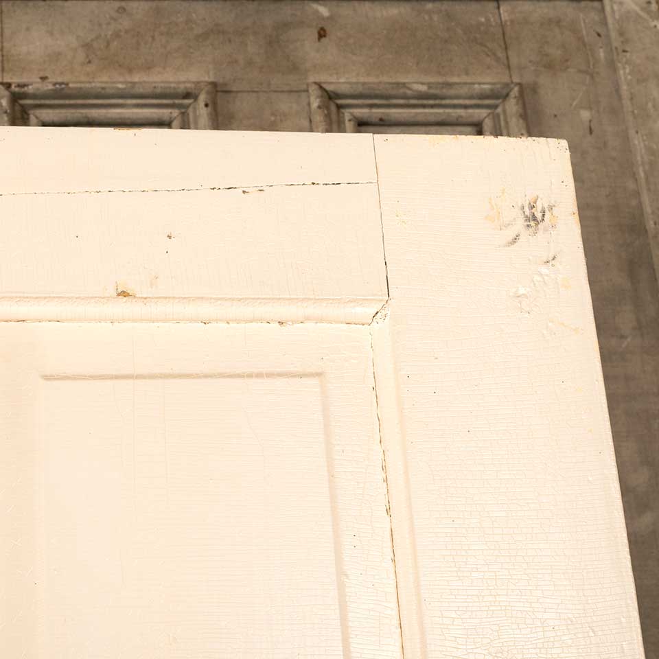 Architectural salvage antique four panel painted wood interior door measuring approx. 32" wide x 79 3/4" tall x 1 3/8" thick. There appears to be a split in the top rail. See photos to evaluate condition.