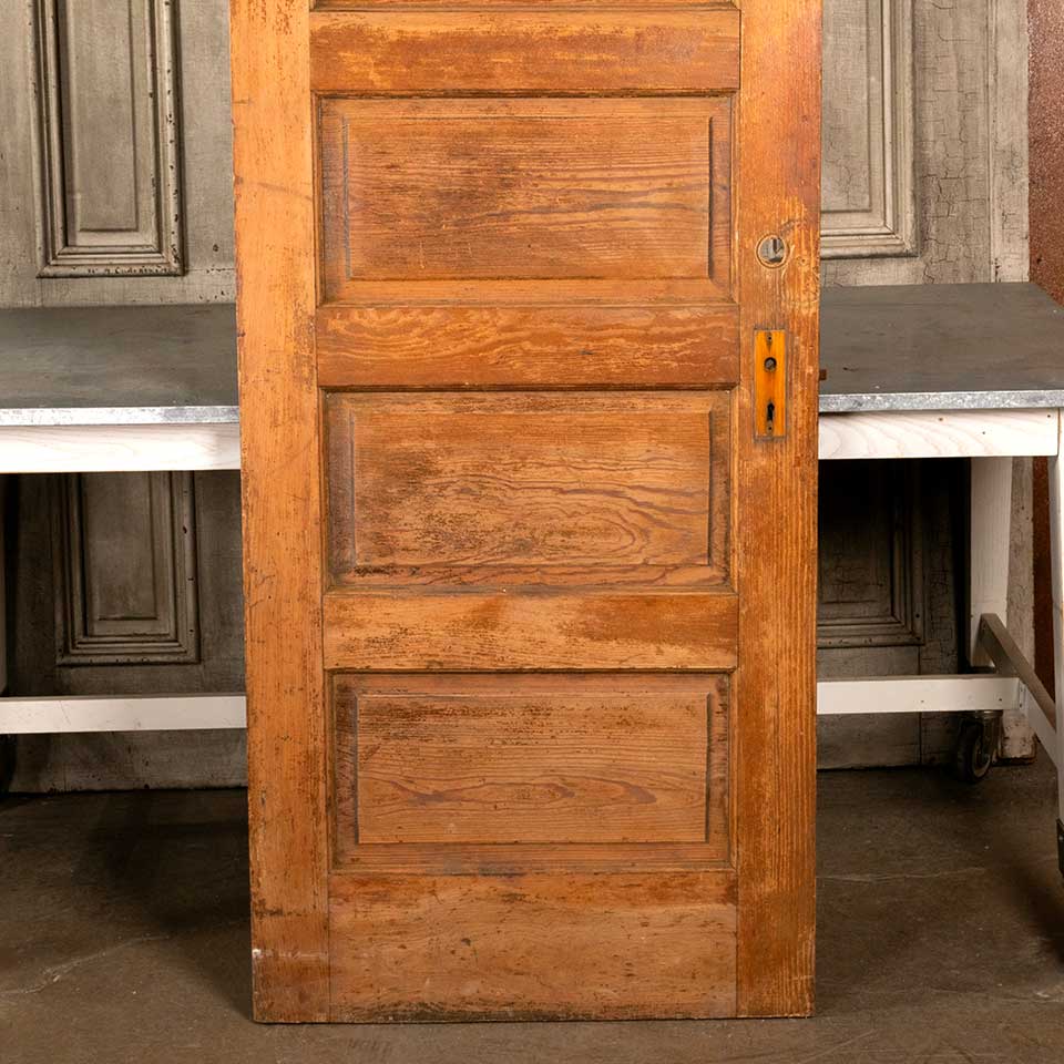 Architectural salvage antique five panel pine interior door with mortise lock measuring approx. 29 3/4" wide x 82 1/2" tall x 1 3/8" thick. See photos to evaluate condition.