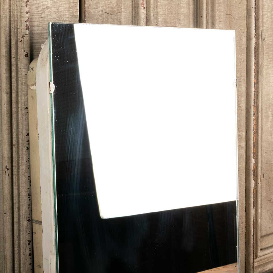 Architectural salvage vintage metal in the wall bathroom medicine cabinet with two glass shelves measuring approx. 16" wide x 22" tall x 4 3/4" front to back. The in wall box measures approx. 13 1/8" wide x 19 1/8" tall x 3 1/8" front to back. See photos to evaluate condition.
