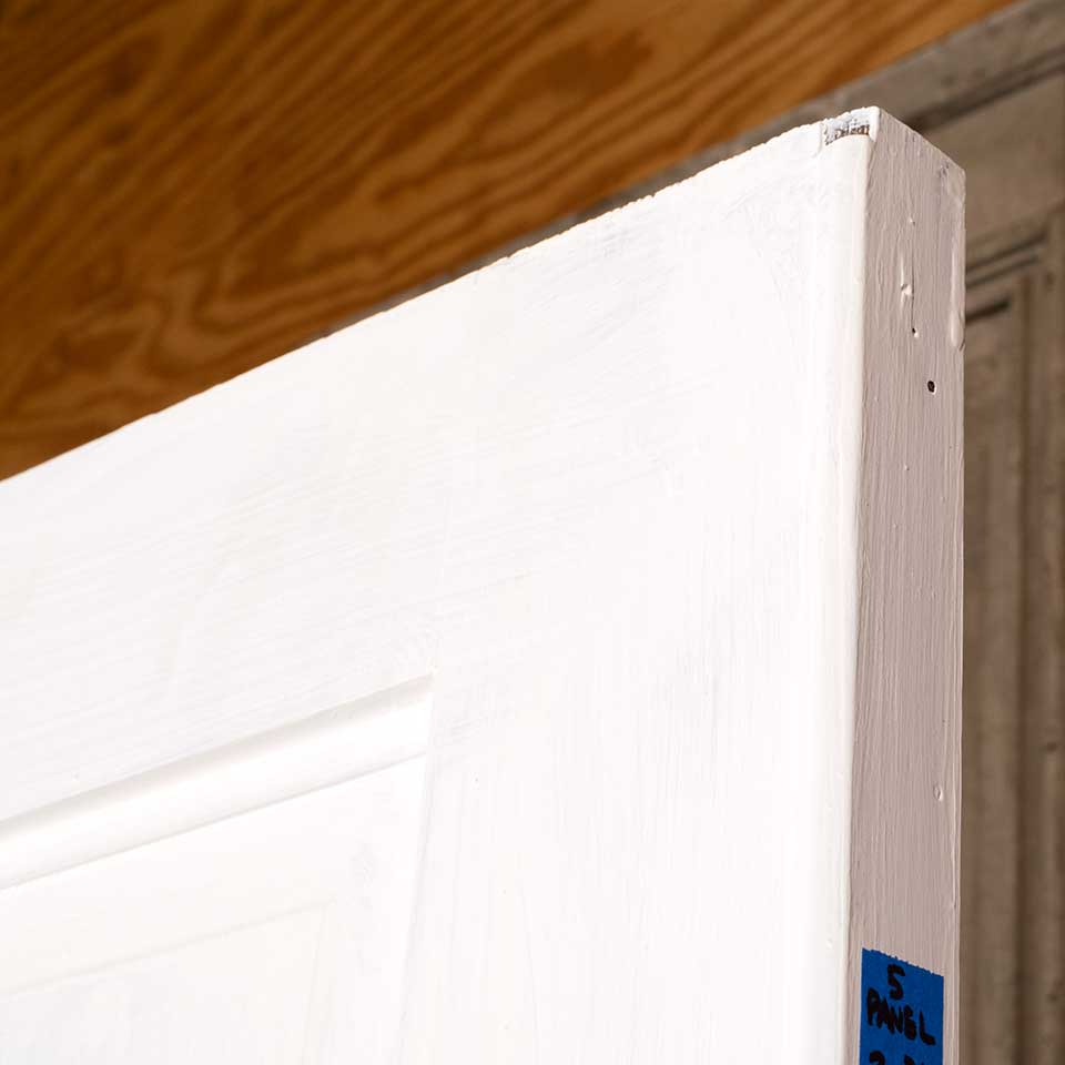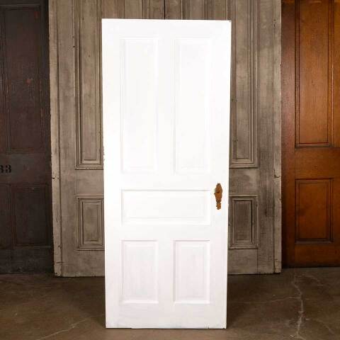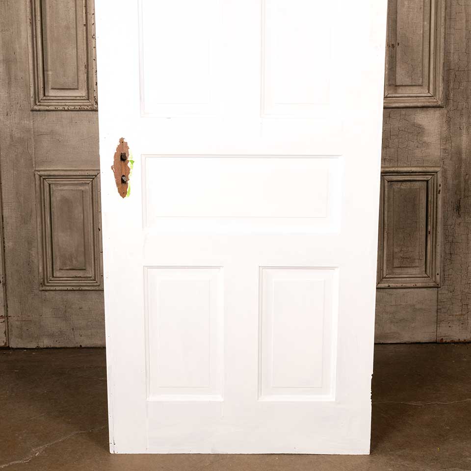 Architectural salvage antique five panel painted wood interior door with mortise lock measuring approx. 30 3/16" wide x 75" tall x 1 3/8" thick. See photos to evaluate condition.
