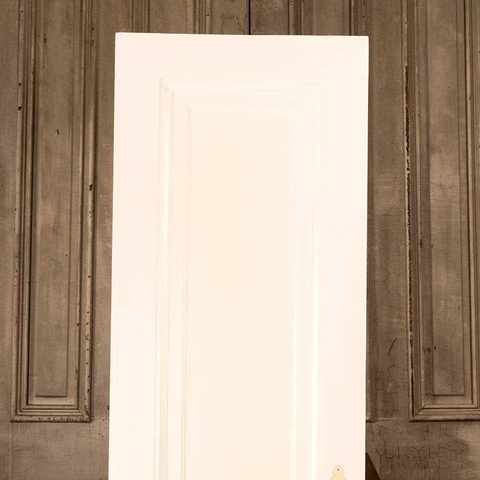 Architectural salvage antique painted wood one panel interior Miracle door with mortise lock measuring approx. 23 7/8" wide x 76 7/16" tall x 1 3/8" thick. See photos to evaluate condition.