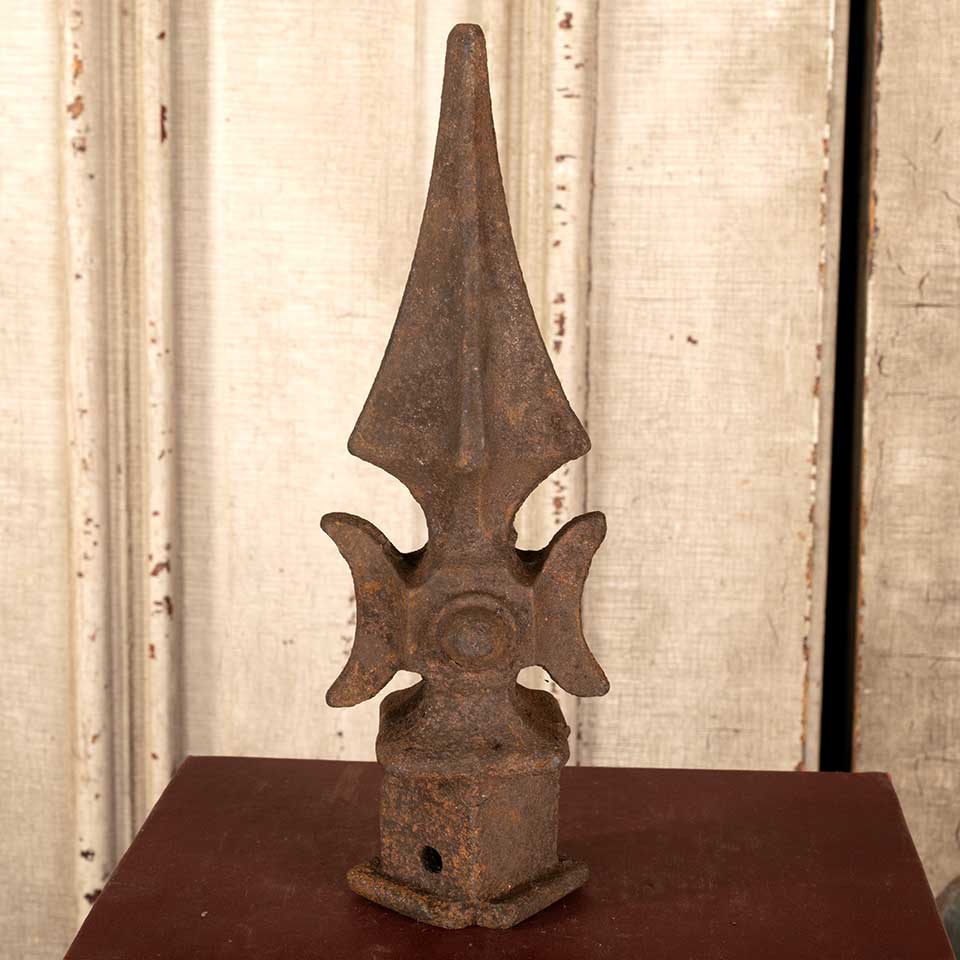 Architectural salvage antique cast iron fence finial ornament measuring approx. 2 3/4" x 2 1/2" x 8 1/2" tall. Color and condition may vary, see photos to evaluate. Priced at $45/each.