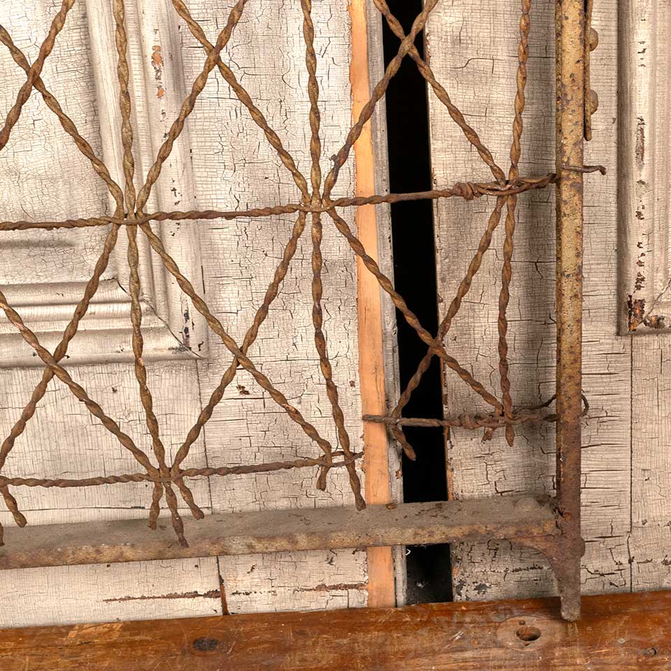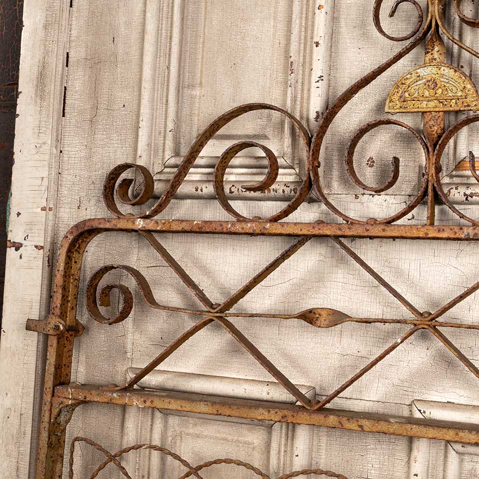 Architectural salvage antique wrought iron garden gate with metal wire bottom panel measuring approx. 36 1/2" wide x 45 1/8" tall x 1 5/8" front to back. See photos to evaluate condition.