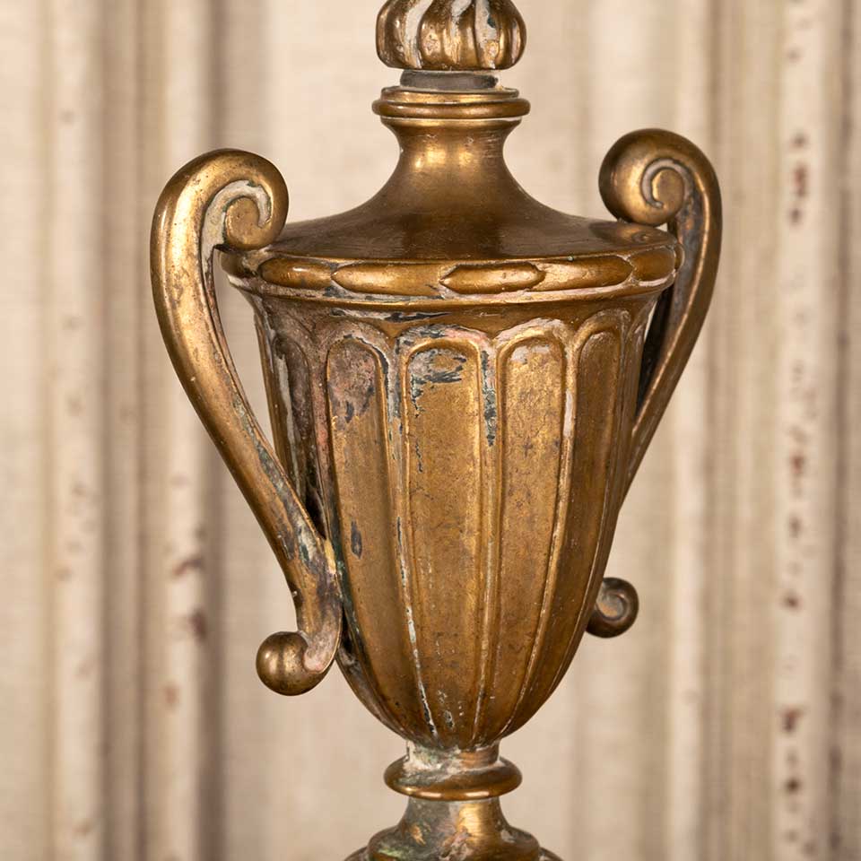 Architectural salvage antique solid cast brass finial measuring approx. 4" in diameter x 8 1/4" tall x 2 3/4" front to back with a 2" diameter base. See photos to evaluate condition.