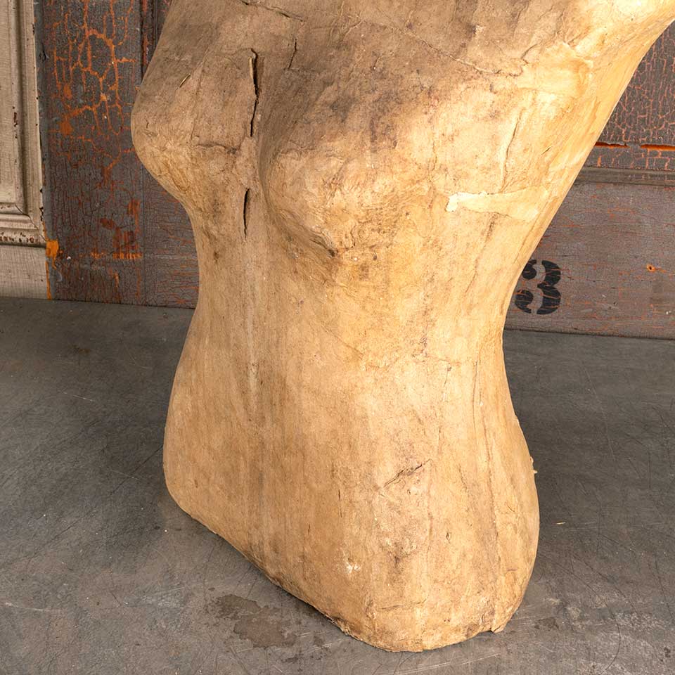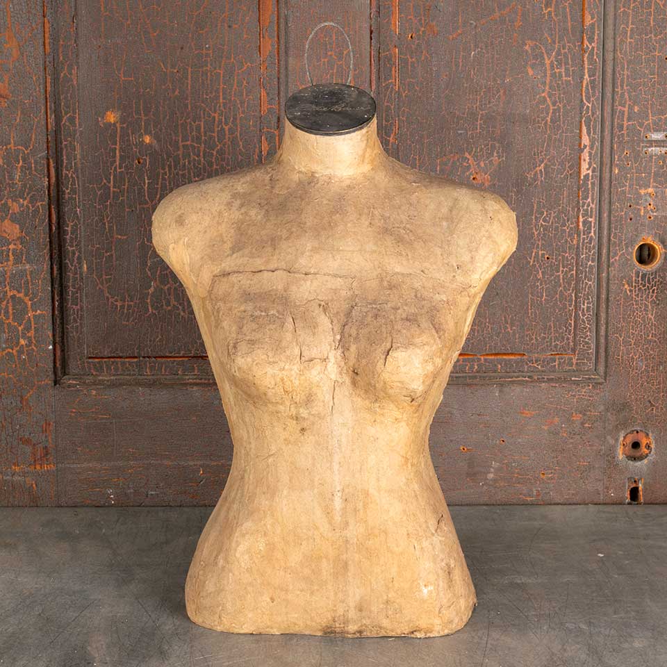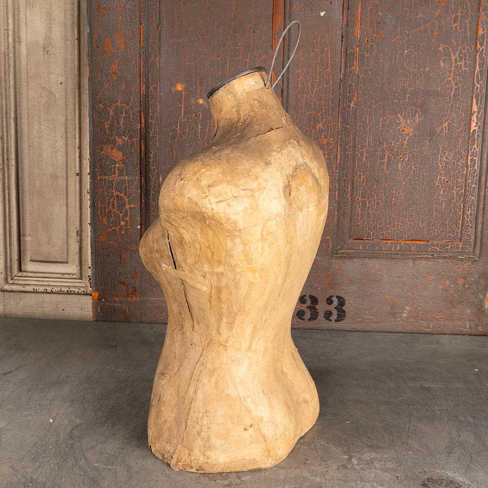 Salvaged cardboard female mannequin torso with metal wire wall hanger measuring approx. 16" wide x 23 1/2" tall x 10 1/2" front to back. Marked on the neck "Eddie Bauer". See photos to evaluate condition.