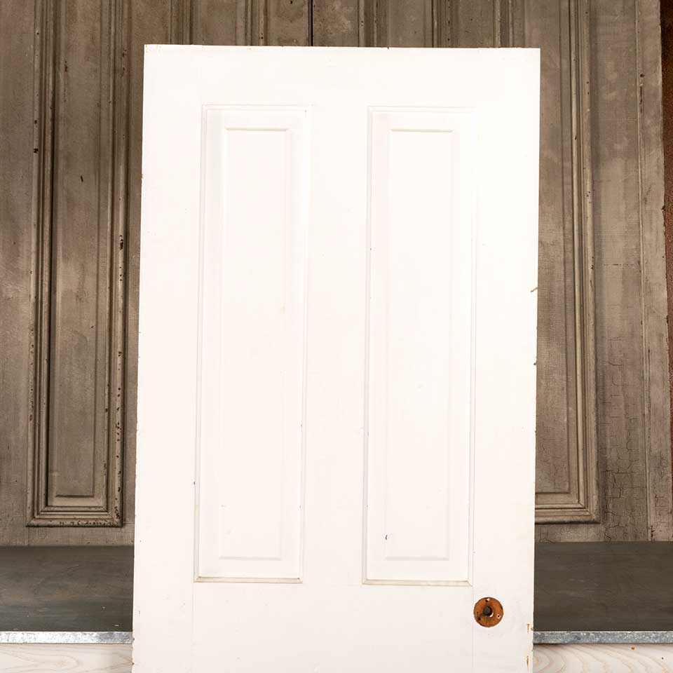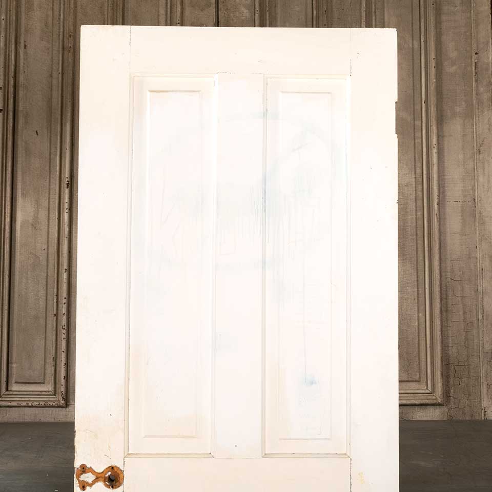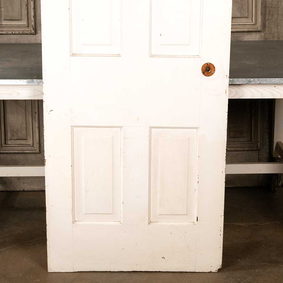 Architectural salvage antique four panel painted wood interior door measuring approx. 29 3/4" wide x 76 15/16" tall x 1 3/8" thick. See photos to evaluate condition.