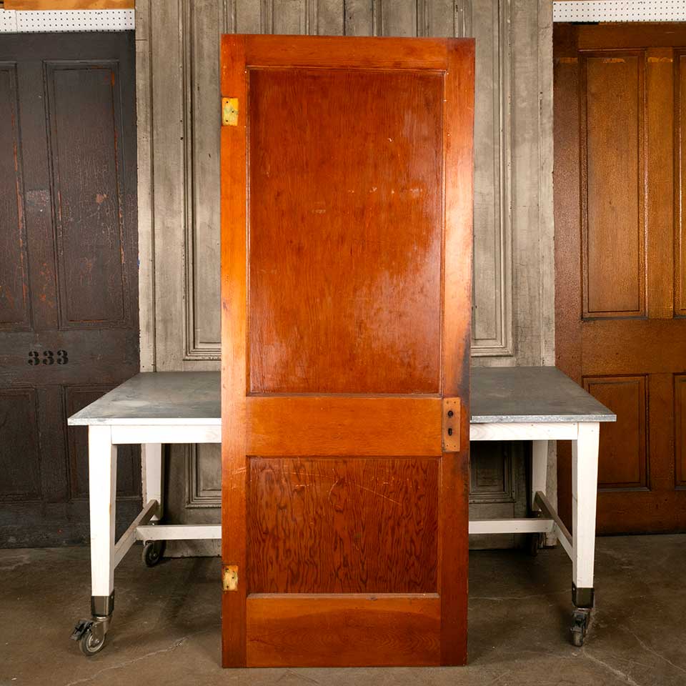 Architectural salvage antique two panel pine interior door with mortise lock measuring approx. 32 1/4" wide x 81 7/8" tall x 1 3/8" thick. See photos to evaluate condition.