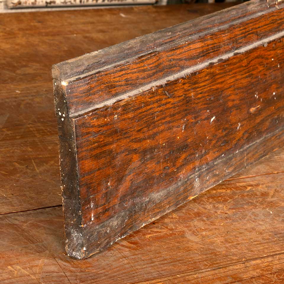 Architectural salvage unpainted antique oak wood baseboard molding trim measuring approximately 6 3/8" tall x 3/4" thick. Quantities, lengths and prices as follows: 1 @ 58" ($37.70); 1 @ 59" ($38.35); 1 @ 88" ($57.20).