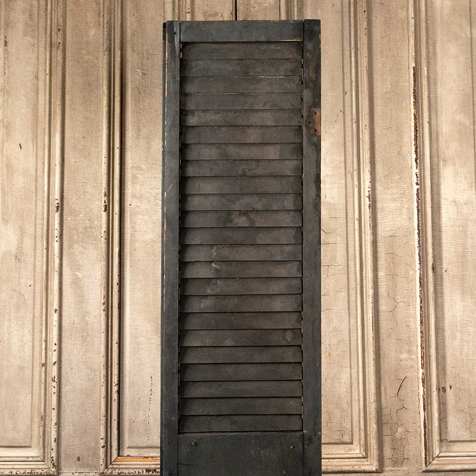 Architectural salvage antique exterior louvered wood shutter measuring approx. 14" wide x 79" tall x 1 3/8" front to back. Color and condition vary, see photos to evaluate. Priced at $35/each.