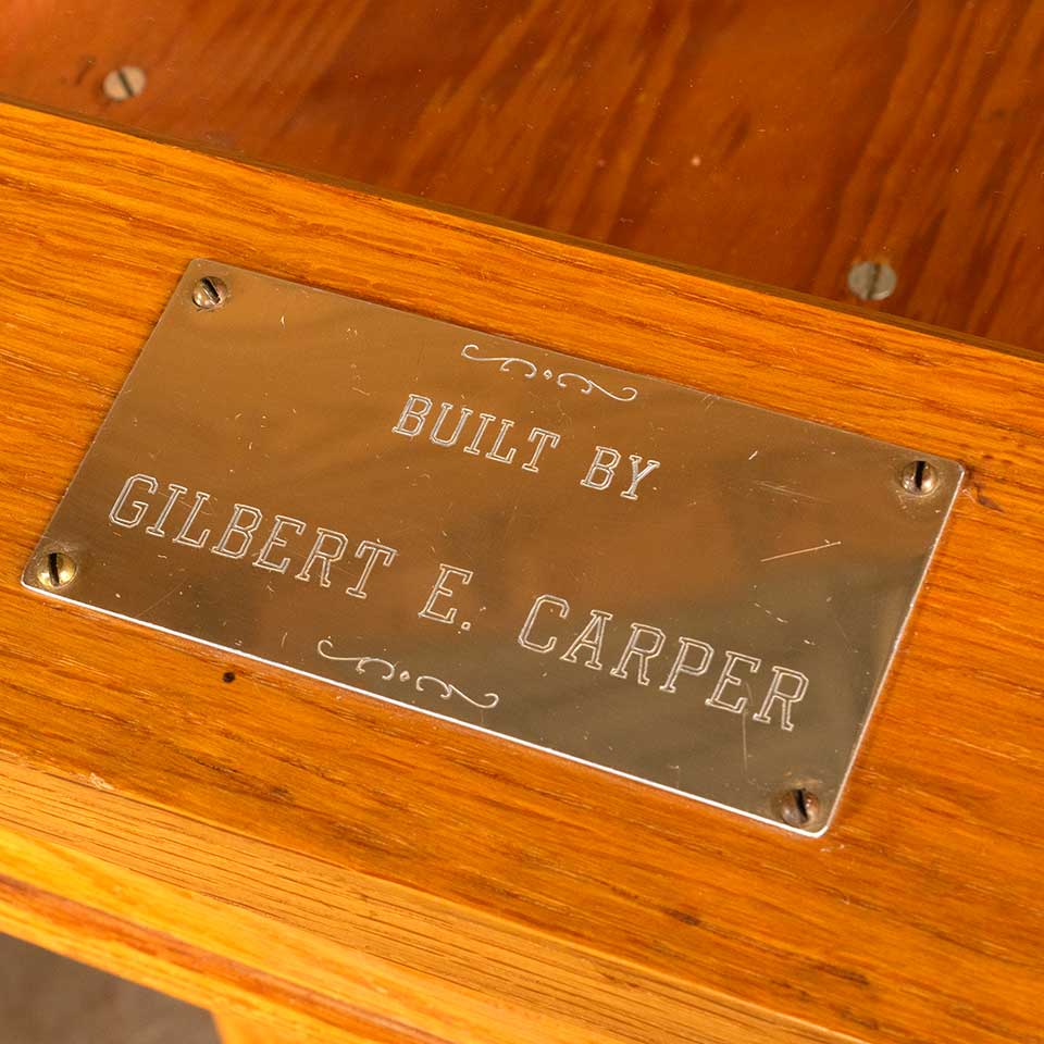 Architectural salvage oak podium stand display case with hinged framed glass top measuring approx. 30" wide x 42 1/2" x 22" front to back. There are lights on either side of the interior. See photos to evaluate condition.