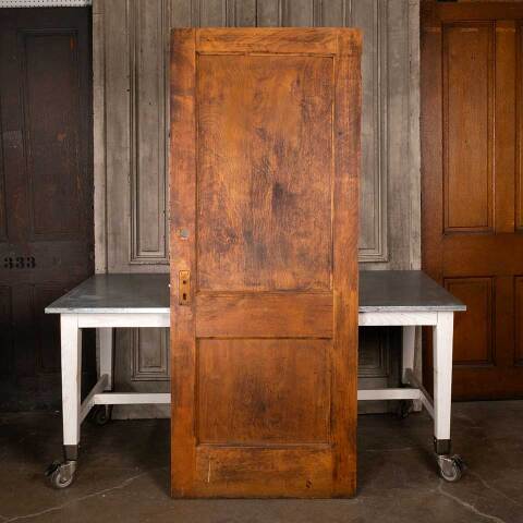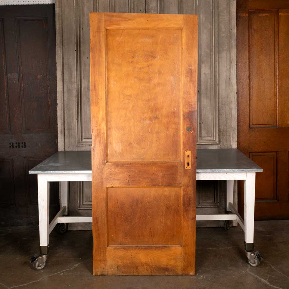 Architectural salvage antique two panel wood interior door with mortise lock measuring approx. 31 3/4" wide x 79 3/8" tall x 1 3/8" thick. See photos to evaluate condition.