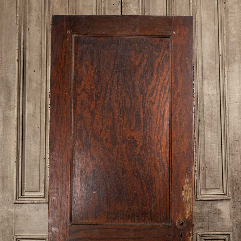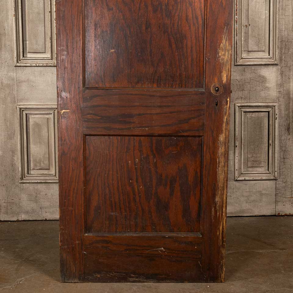 Architectural salvage antique two panel oak wood interior door with mortise lock measuring approx. 30" wide x 79 3/8" tall x 1 3/8" thick. There's some veneer loss along the bottom. See photos to evaluate condition.