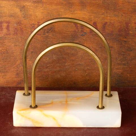 Vintage architectural salvage alabaster and brass desk mail/ letter holder measuring 5" wide x 5" tall x 2" front to back. See photos to evaluate condition.