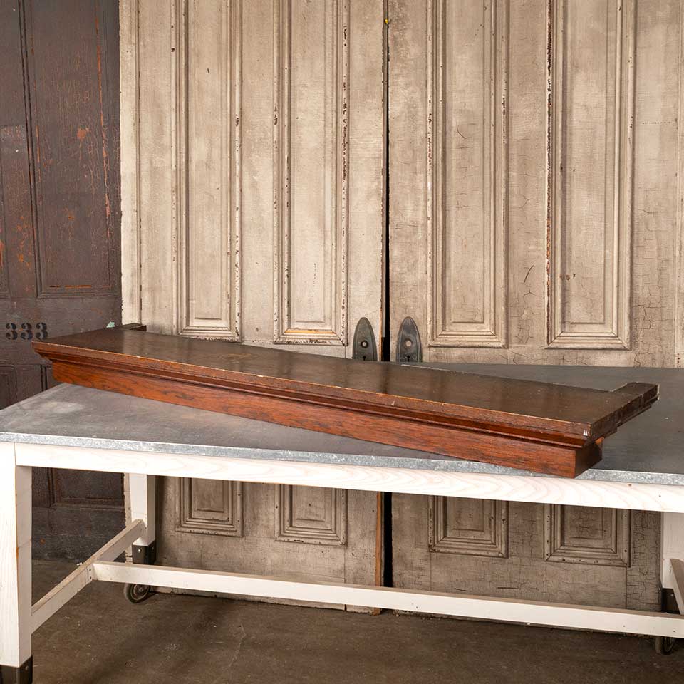 Architectural salvage antique oak fireplace mantel / mantle shelf measuring approx. 66 3/8" wide x 4 7/8" tall x 16 1/2" front to back. The chimney breast notch measures approx. 62" wide x 4 1/2" front to back. See photos to evaluate condition.