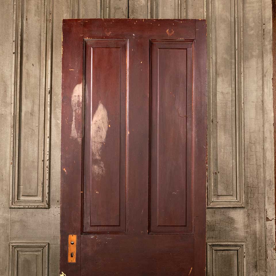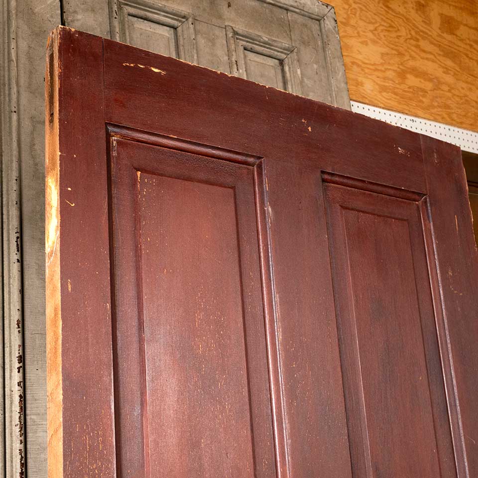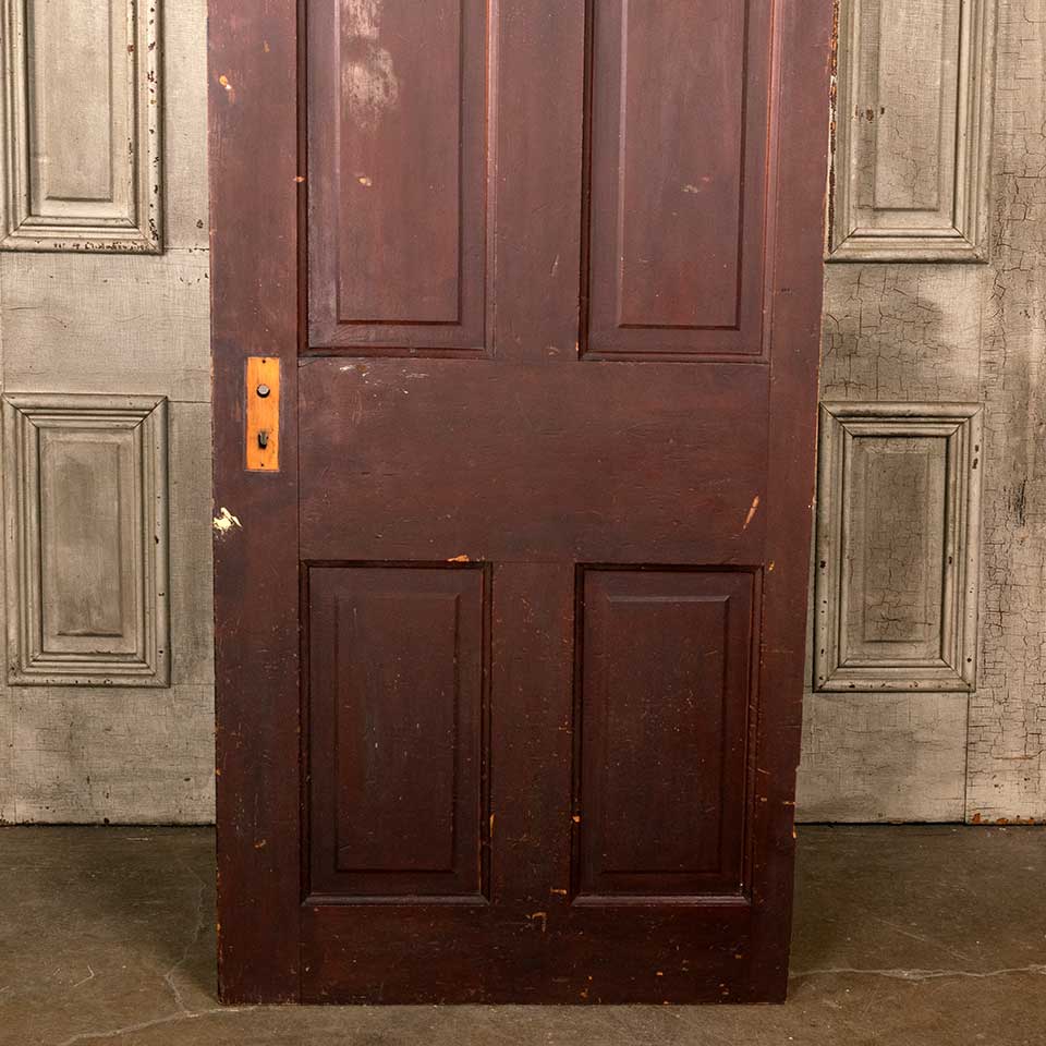 Architectural salvage antique four panel pine wood interior door measuring approx. 29 3/4" wide x 77 1/4" tall x 1 3/8" thick. The door was cut down on the hinged side at some point in its history. See photos to evaluate condition.