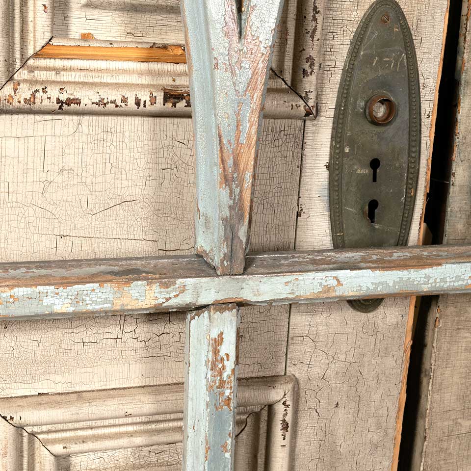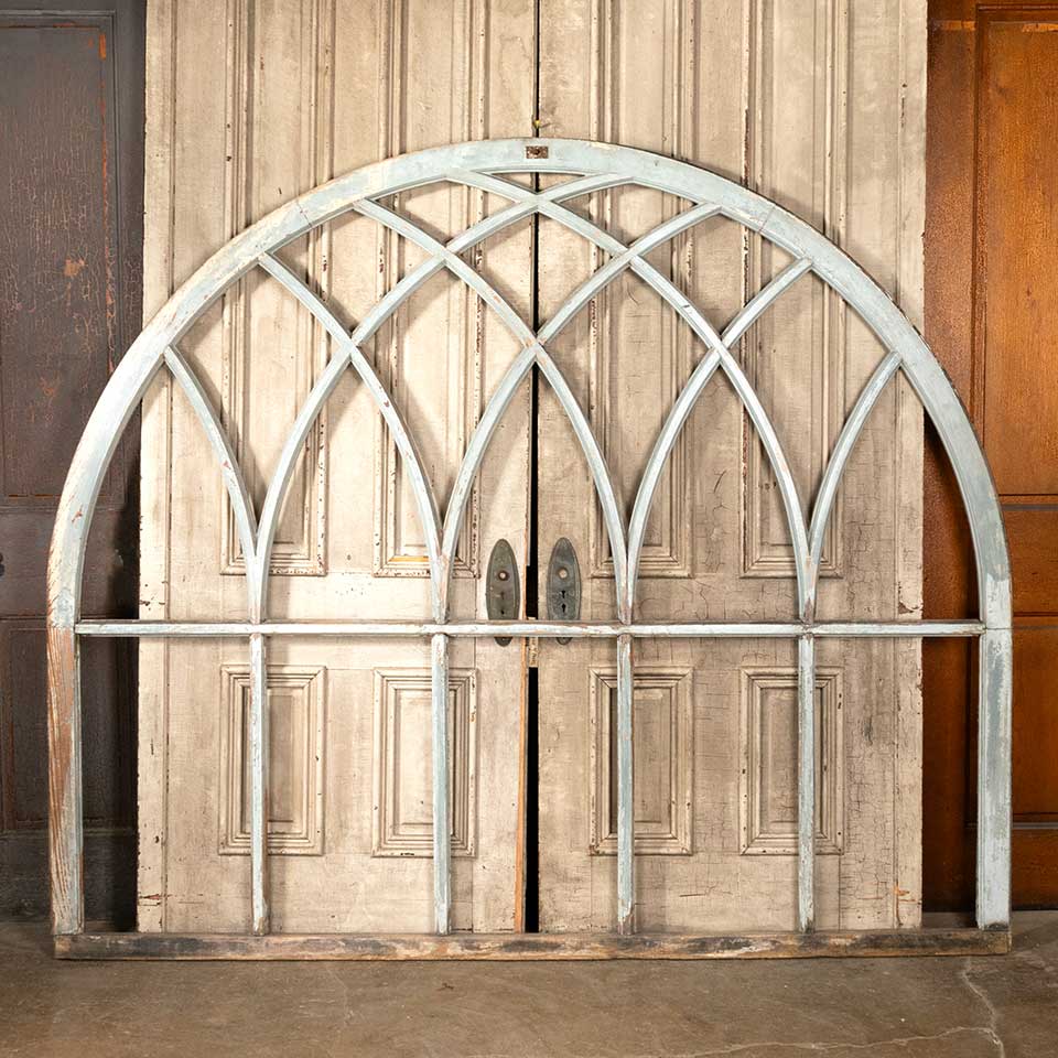 Architectural salvage antique large Gothic divided lite wood window sash measuring approx. 88 1/4" wide x 75" tall x 1 3/4" thick. See photos to evaluate condition.